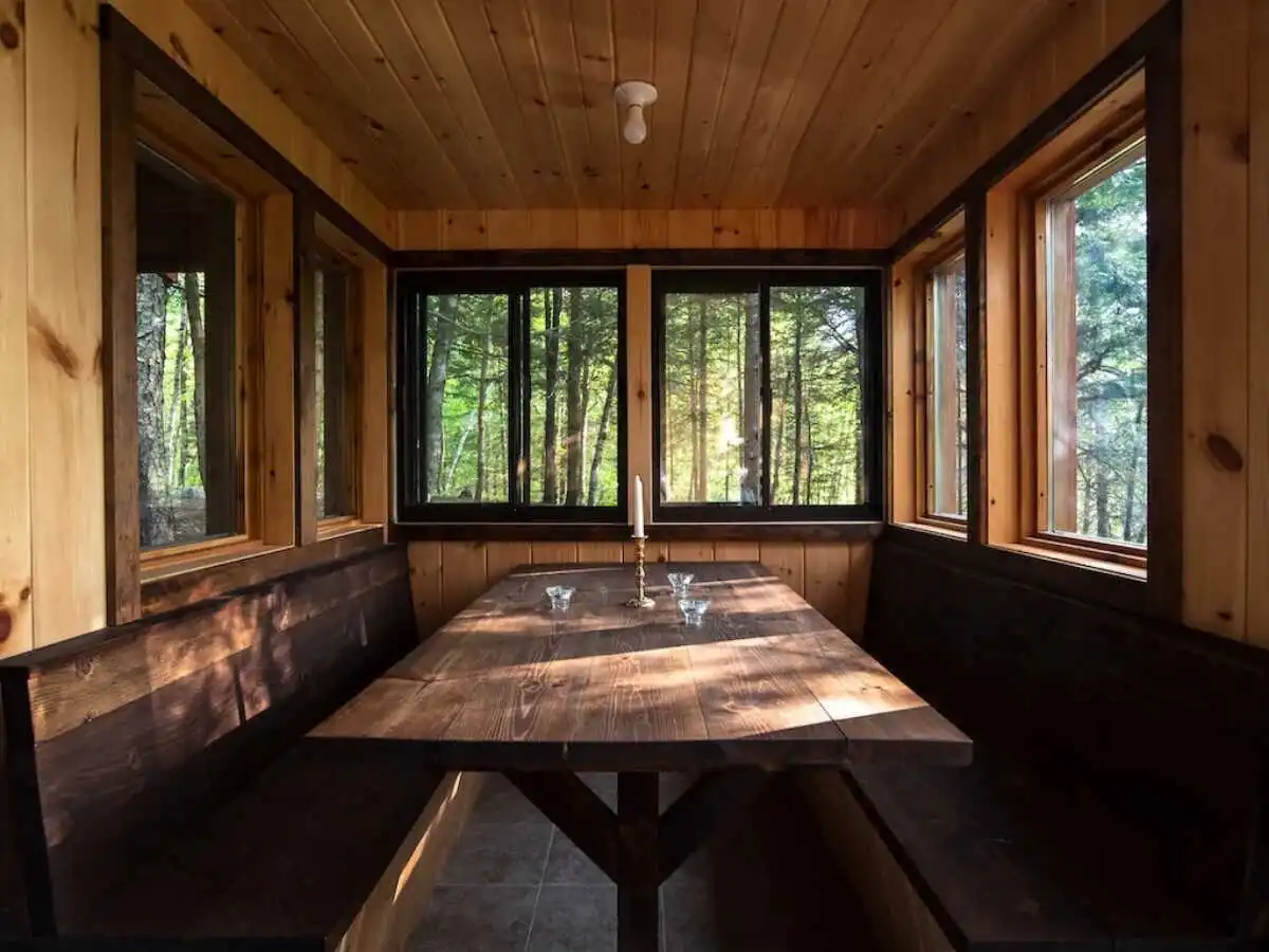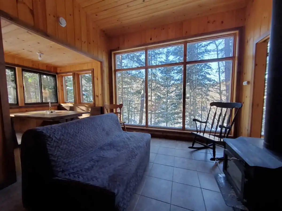 Plongez dans une expérience unique avec cet éco-gîte de 16 X 20, doté d’une galerie couverte sur deux faces et d’une salle à manger avec banquette vitrée sur trois faces, créant l’illusion d’un repas en plein air. Niché le long du paisible ruisseau Petit Missisquoi Nord, au cœur d’une forêt enchanteresse, cet éco-gîte offre une vue à couper le souffle sur les montagnes et les couchers de soleil spectaculaires.
