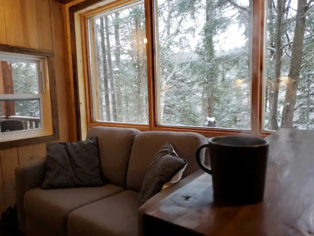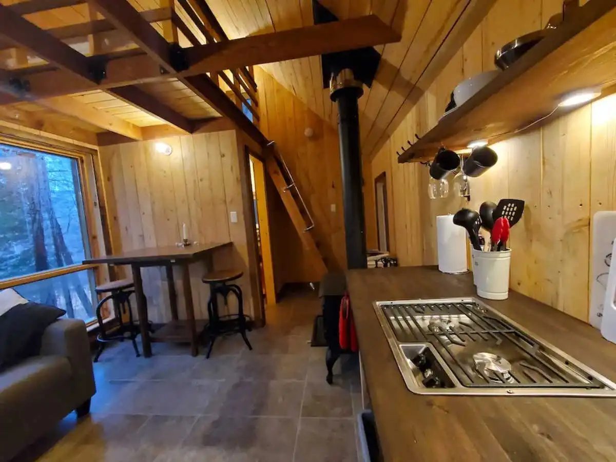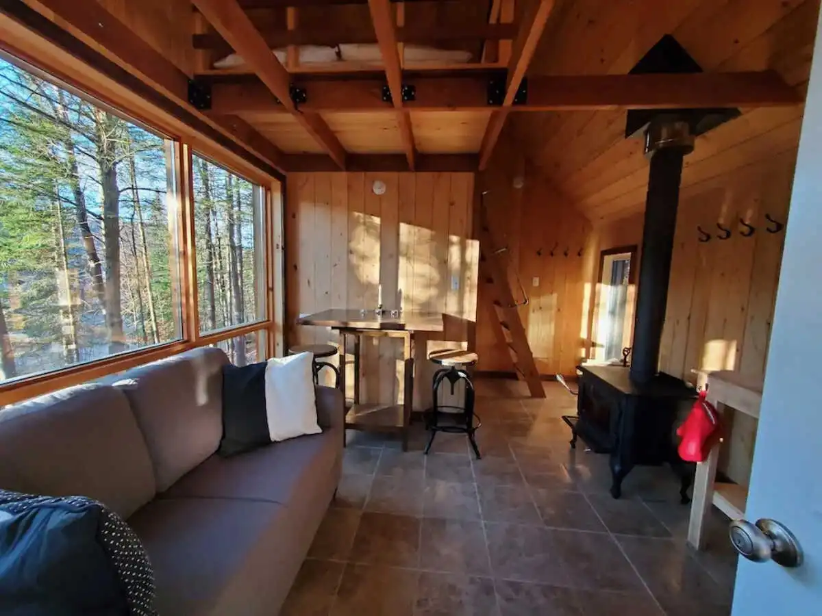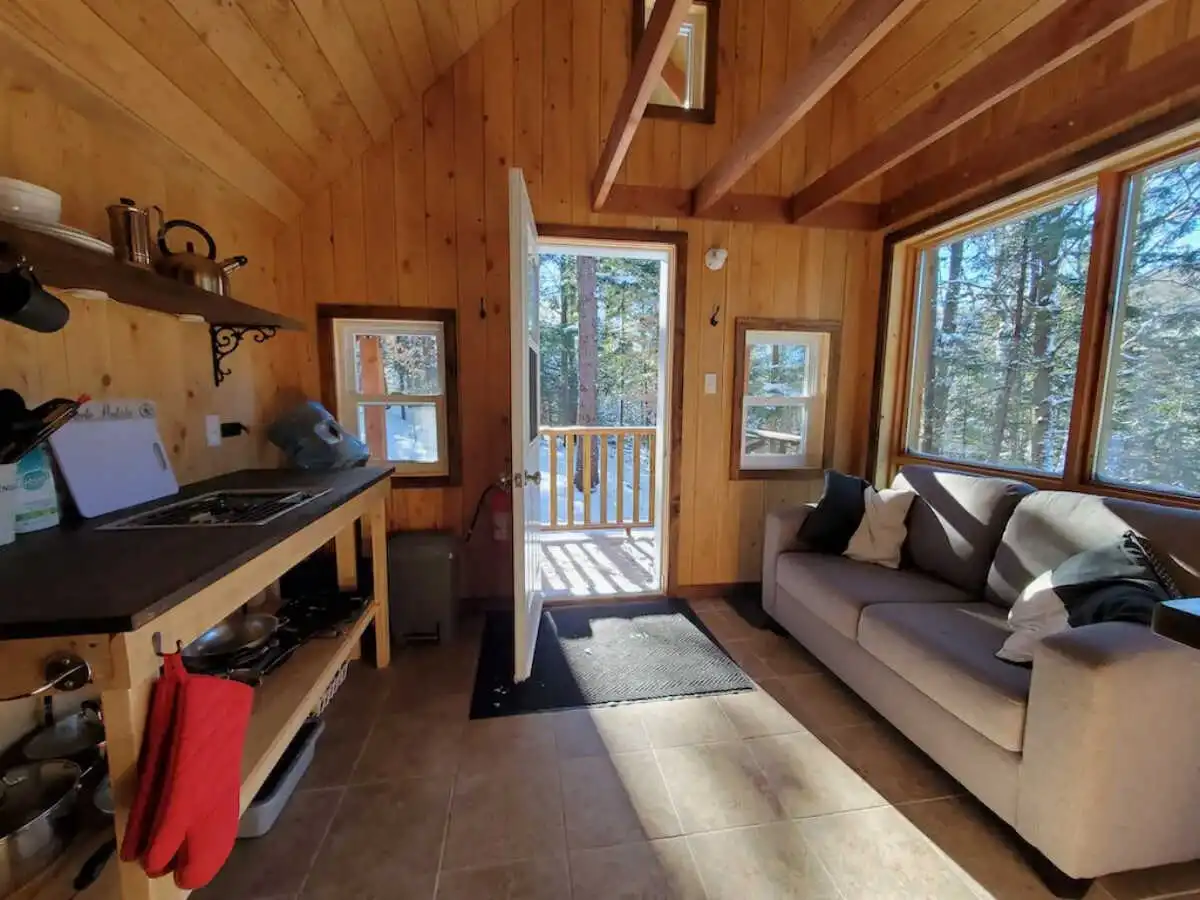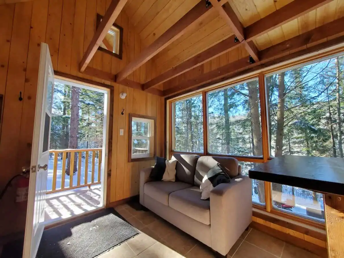 Ce refuge romantique, à l’écart de tous, est l’endroit idéal pour une escapade à deux en pleine nature. Un véritable joyau de 12 X 16 avec une galerie couverte où l’on dors sur la mezzanine.