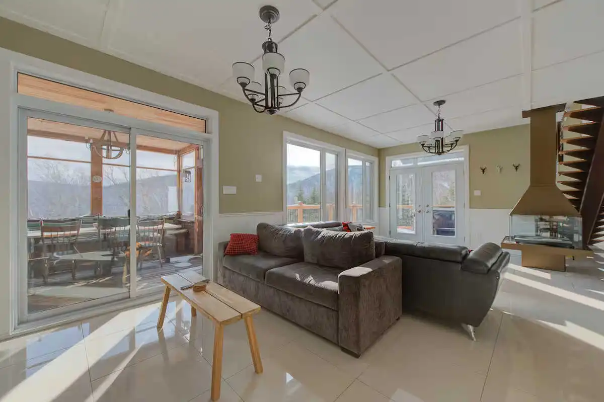Une vue à couper le souffle sur les montagnes, une immense fenestration, le mariage parfait pour un séjour familiale, entre amis ou simplement pour une escapade romantique.