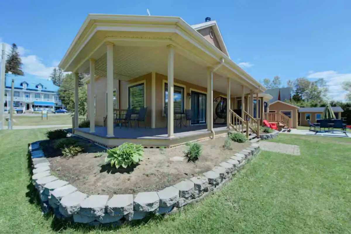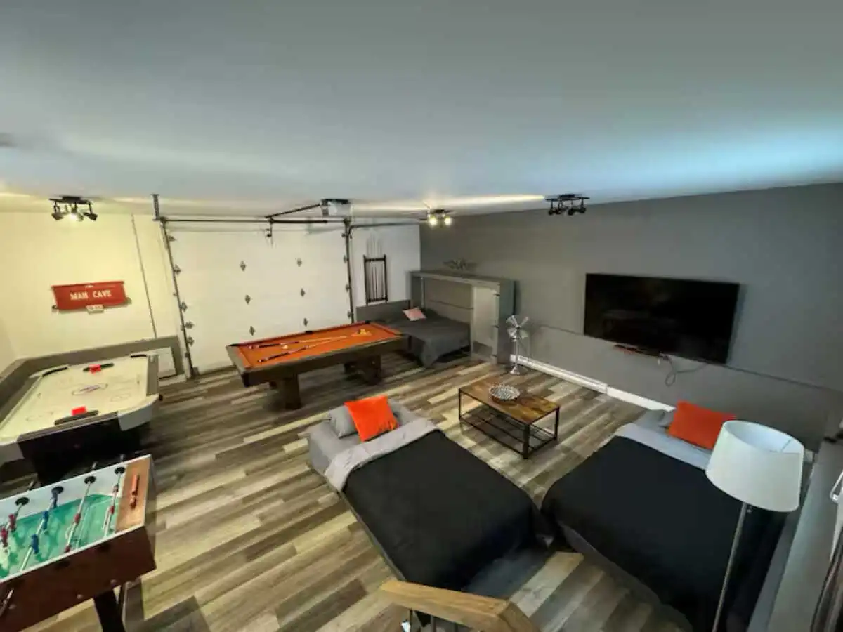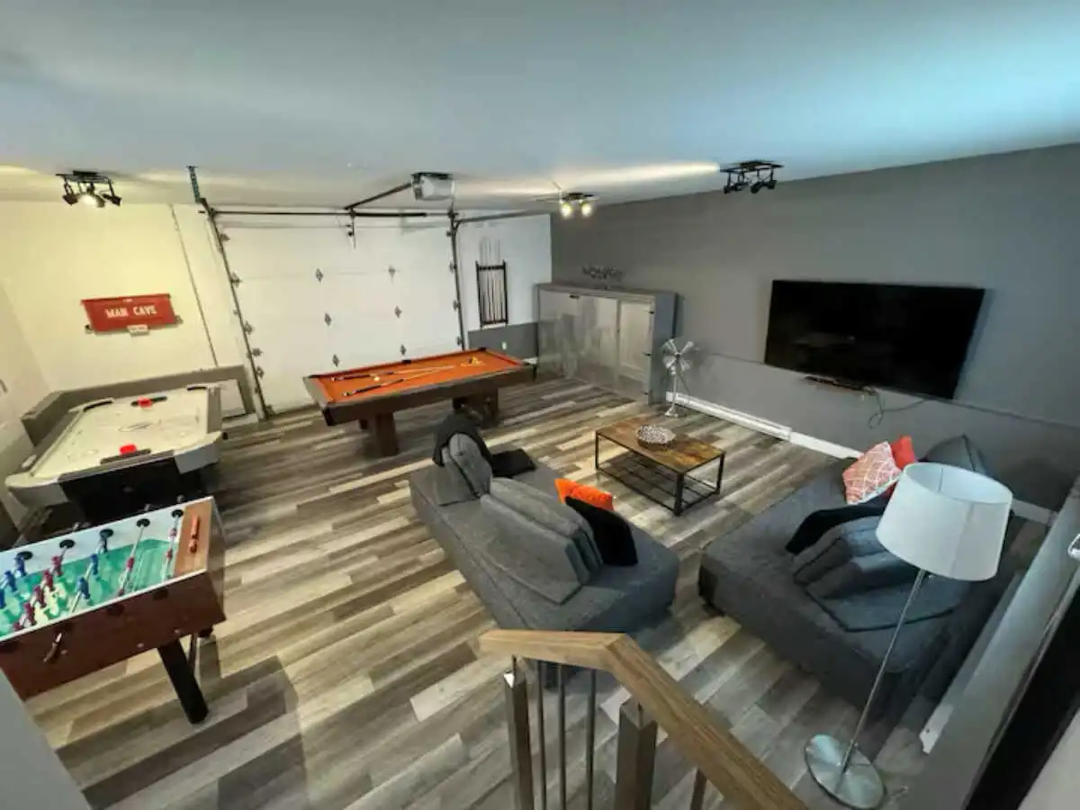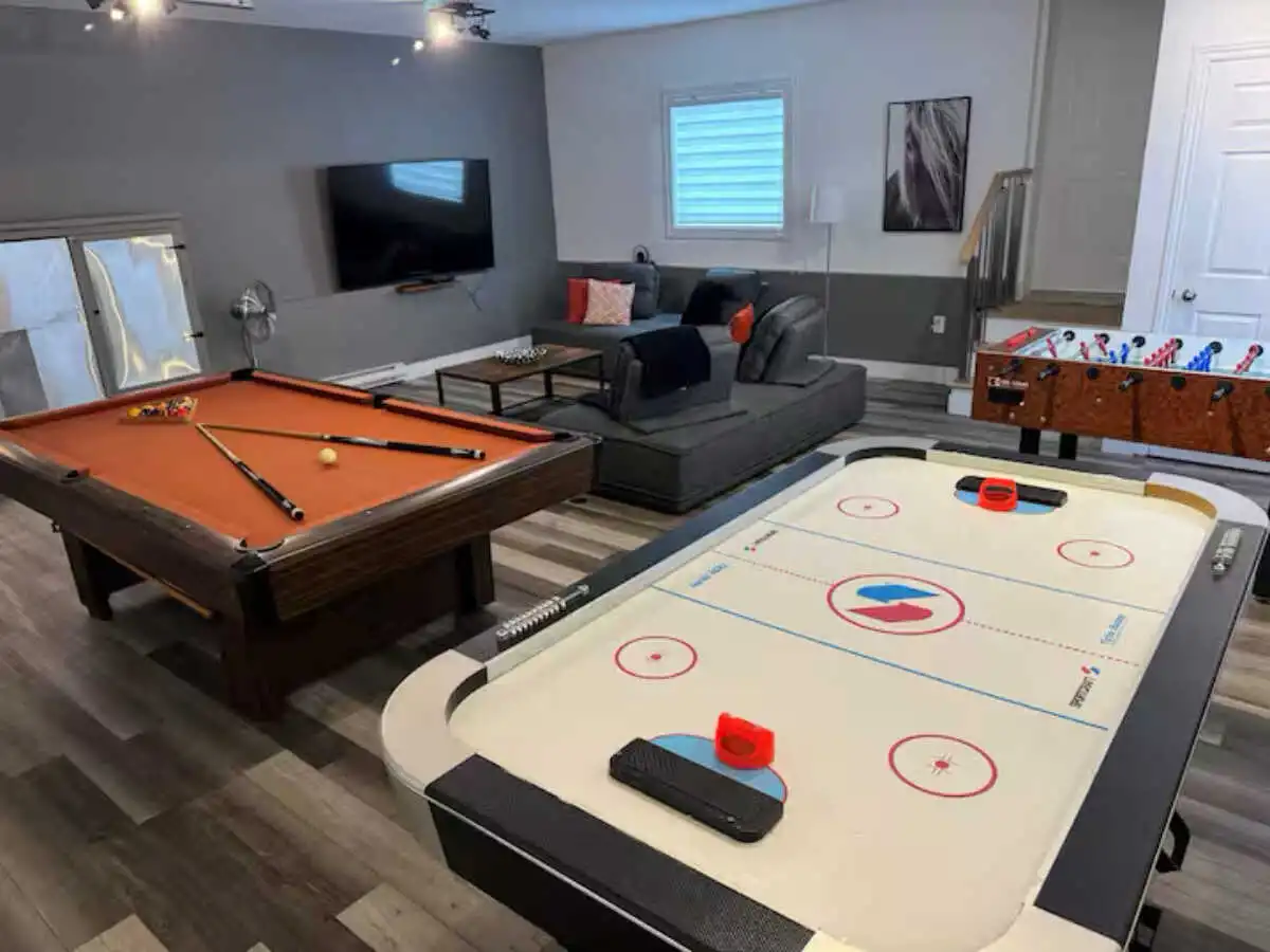 Ce spacieux chalet, d'une superficie de 2600 pieds carrés, répartis sur un étage et demi, peut accueillir jusqu'à 12 personnes en tout confort. Il dispose de toutes les commodités pour vous sentir comme à la maison. Un toit cathédral ajoute une touche unique et une magnifique salle de jeux fermée, servant de 4e chambre, avec téléviseur 75 pouces, table de billard, Air-Hockey, Babyfoot et lit double escamotable promet des moments mémorables pour petits et grands.