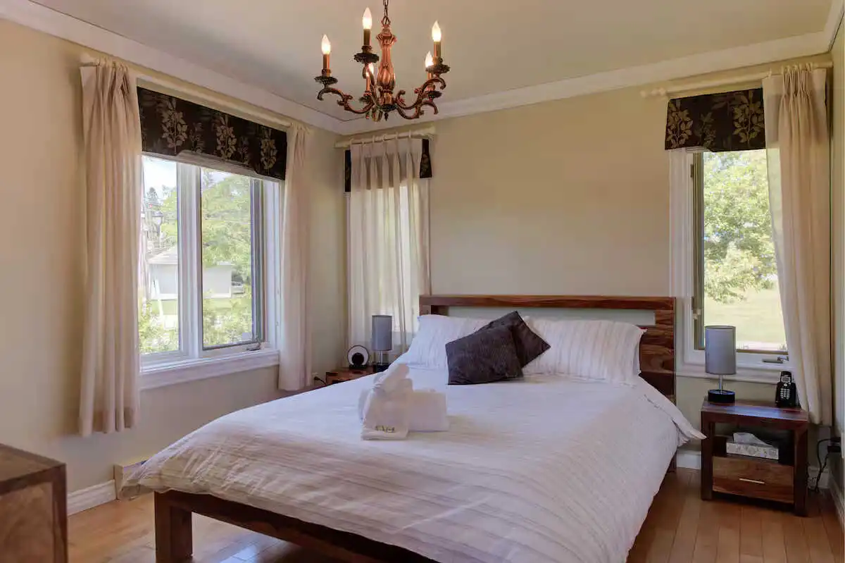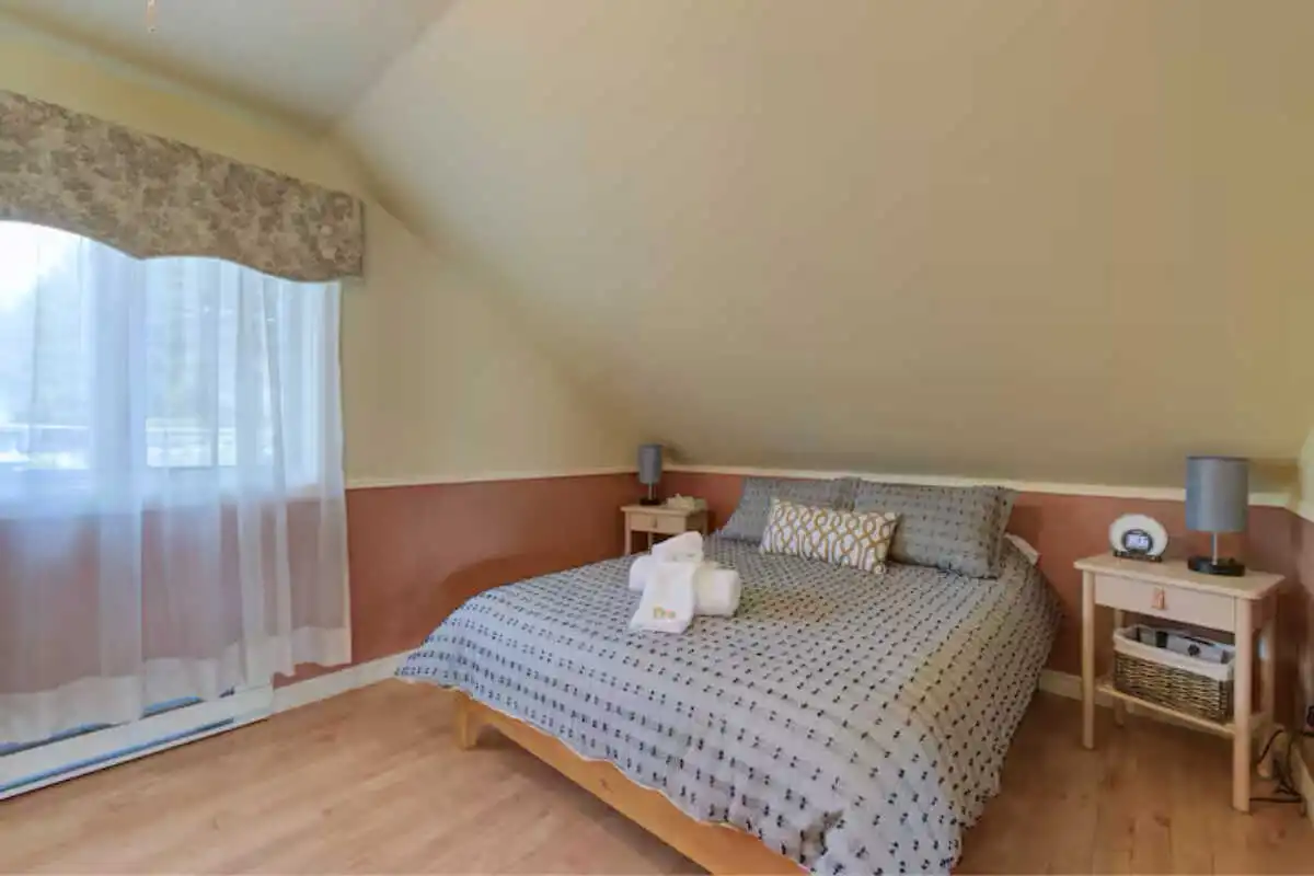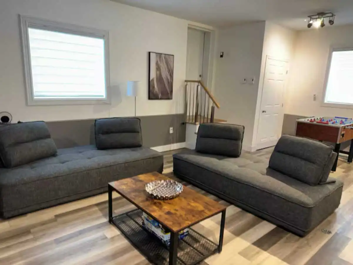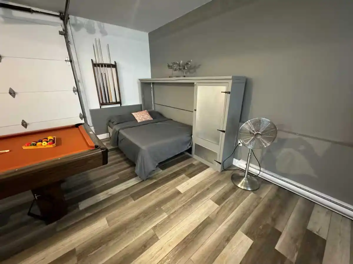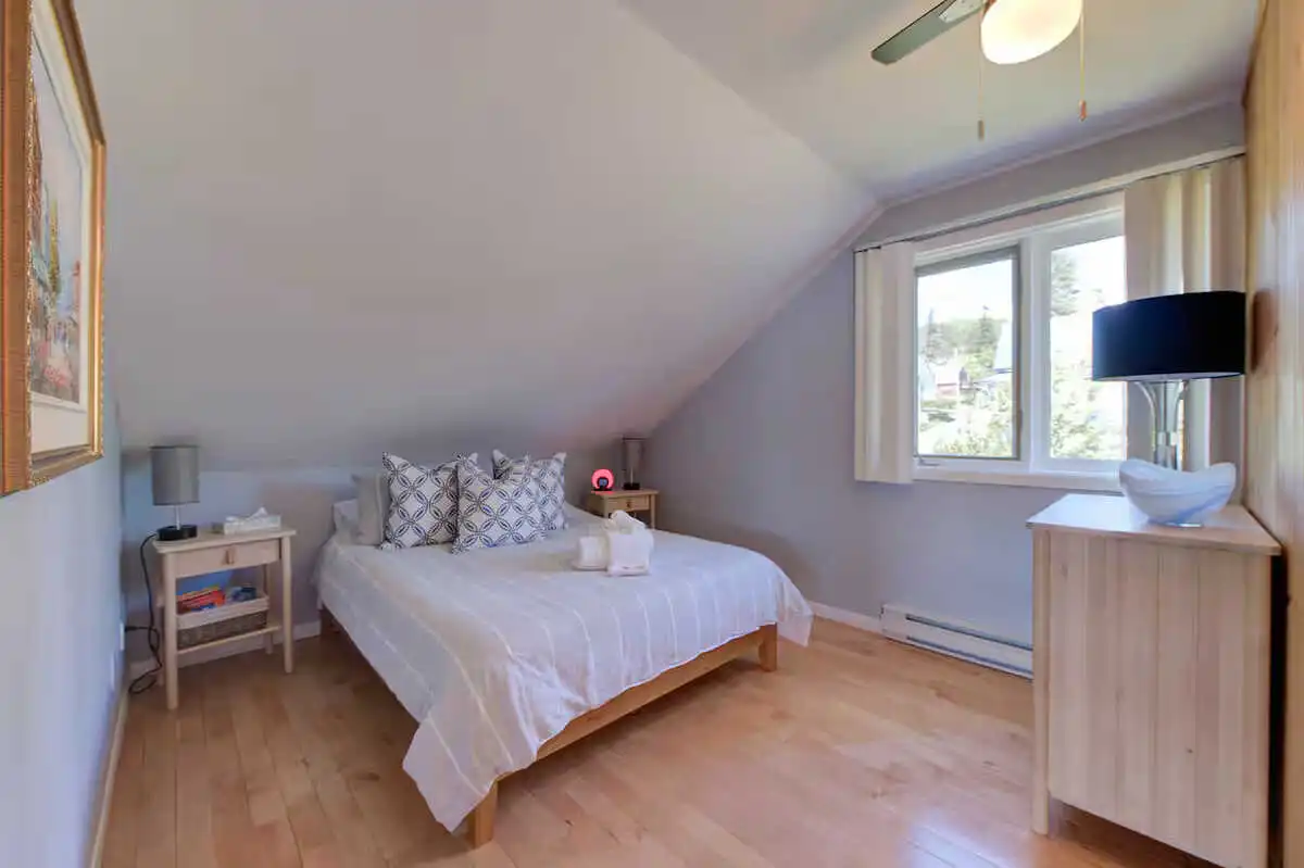 Ce spacieux chalet, d'une superficie de 2600 pieds carrés, répartis sur un étage et demi, peut accueillir jusqu'à 12 personnes en tout confort. Il dispose de toutes les commodités pour vous sentir comme à la maison. Un toit cathédral ajoute une touche unique et une magnifique salle de jeux fermée, servant de 4e chambre, avec téléviseur 75 pouces, table de billard, Air-Hockey, Babyfoot et lit double escamotable promet des moments mémorables pour petits et grands.