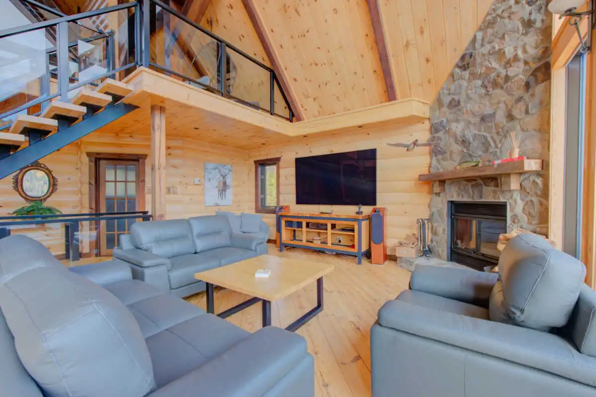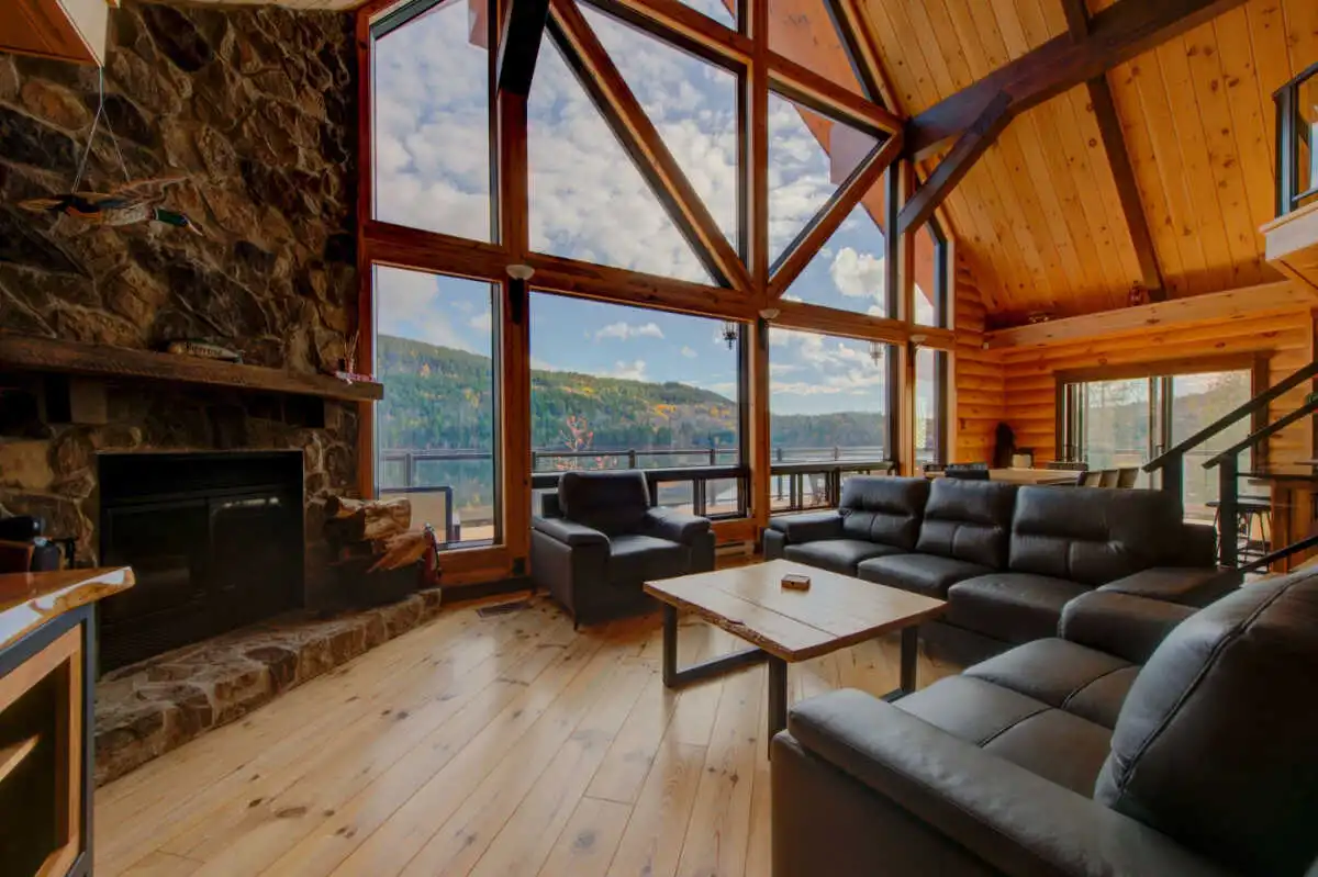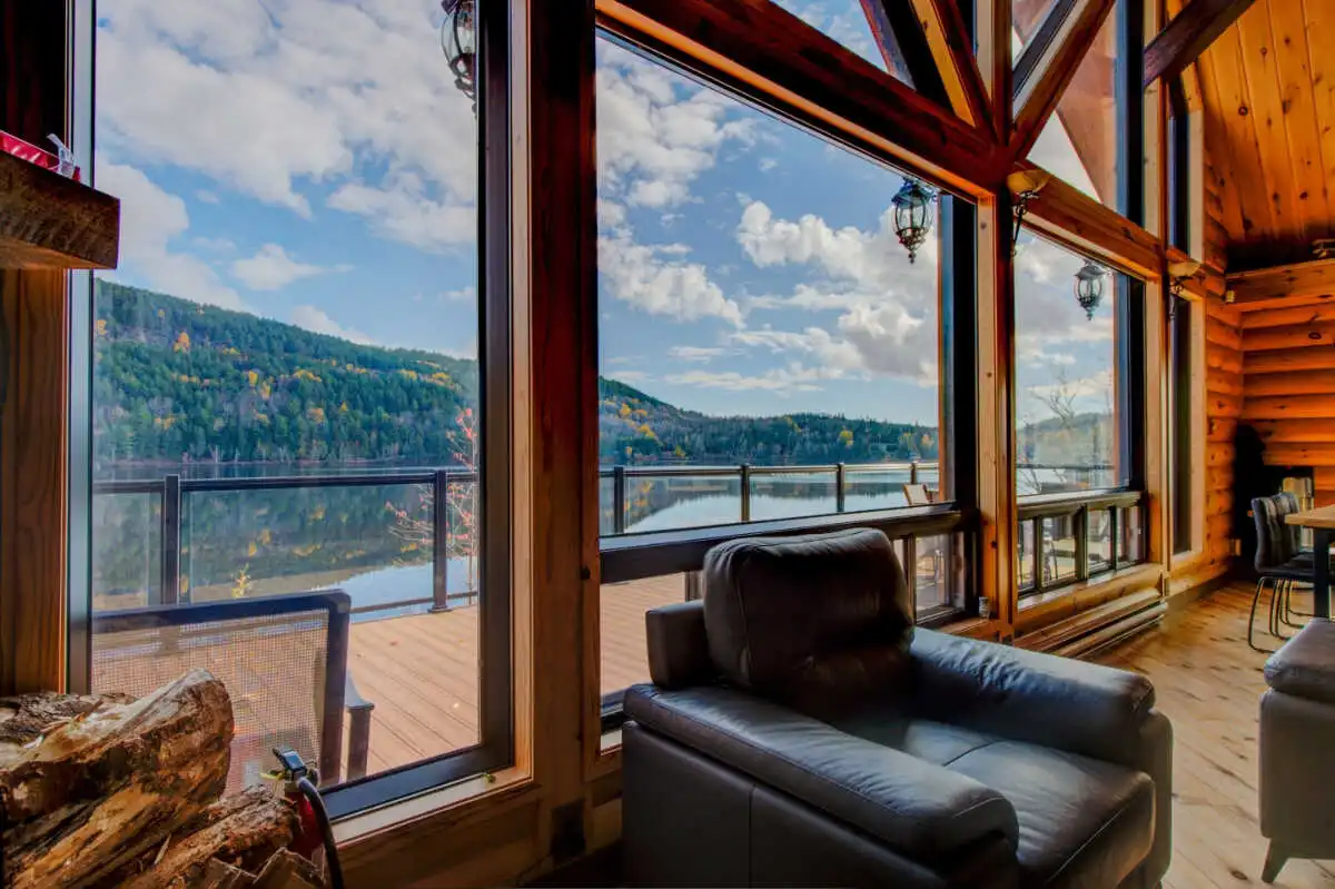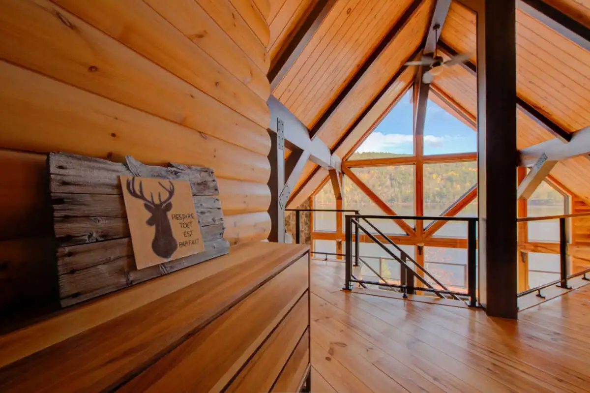 Votre séjour débute ici! Chalet Le Trésor du Lac à Mandeville dans la région de Lanaudière charmera autant par sa vue impressionnante sur le lac Sainte-Rose que son côté bois rond, son décor chaleureux et son architecture moderne.