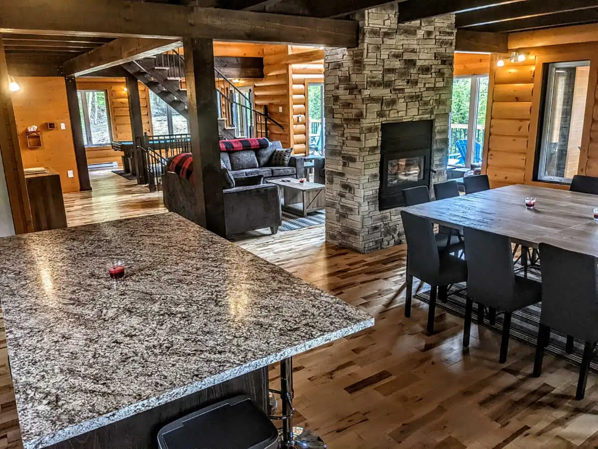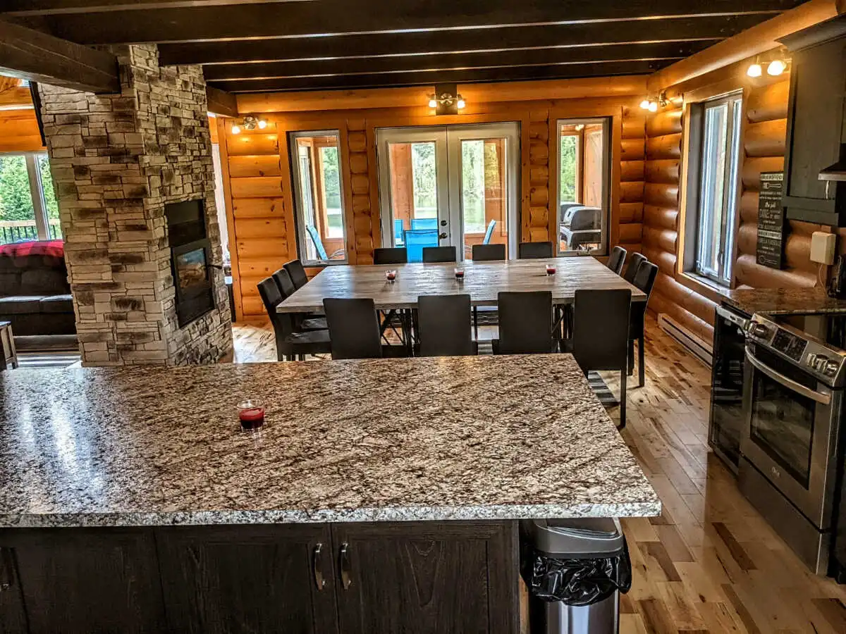 Sur notre immense terrain de 7 500 000 pi2, nous avons 6 gros chalets de luxe de 6 chambres pour 20 personnes, tous identiques et tous situés directement sur le bord de notre superbe lac White Rocks avec tous leur pr... Lire la suite