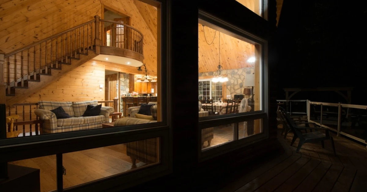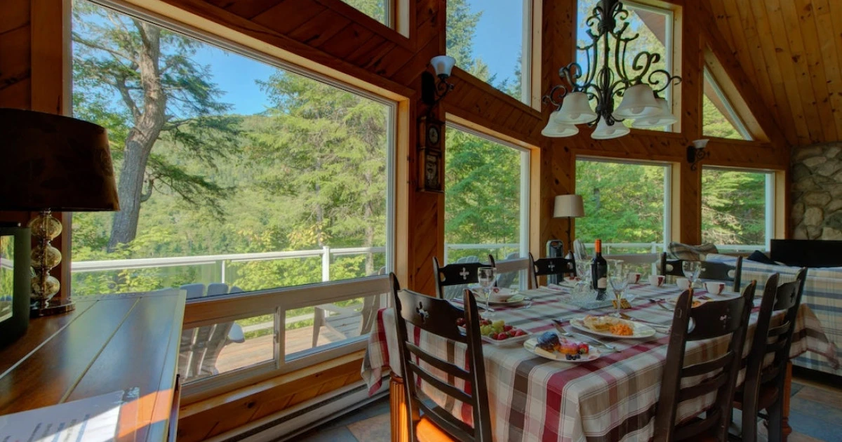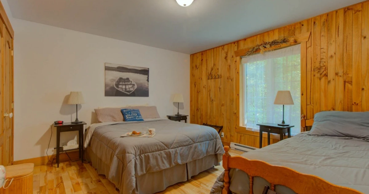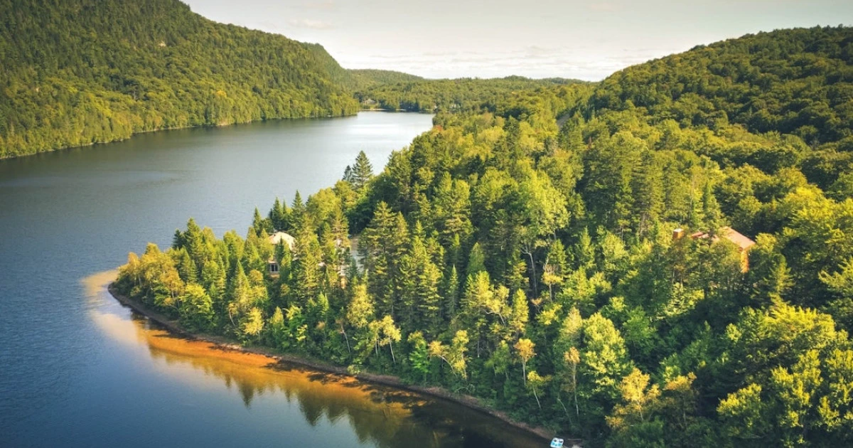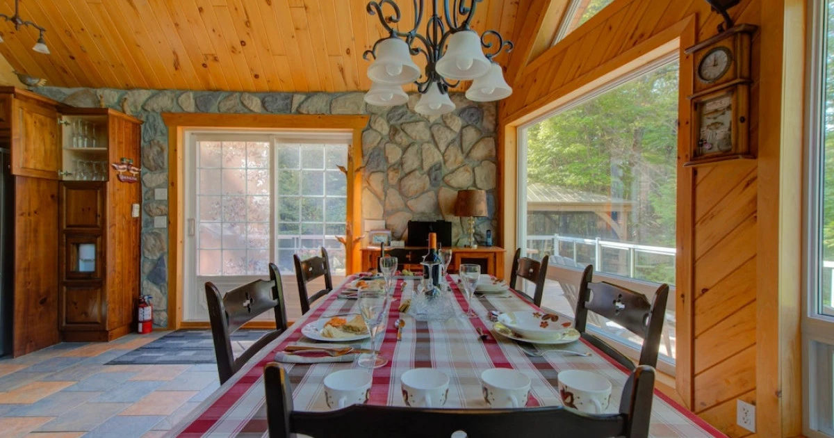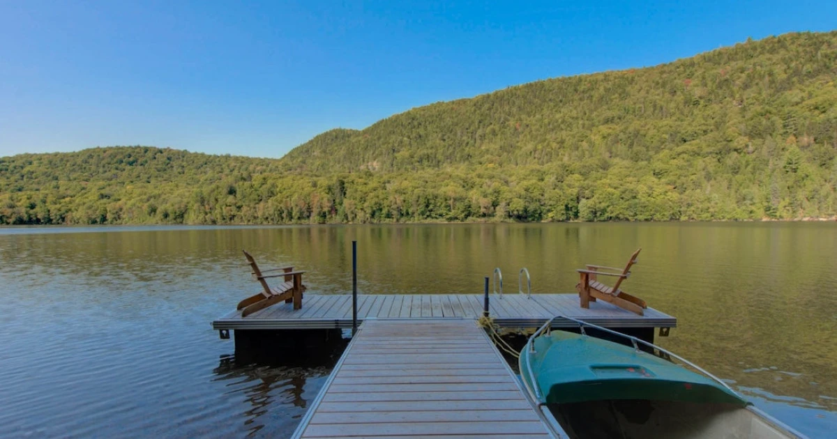 Découvrez un sublime chalet de luxe en Mauricie, niché dans la verdoyante nature au bord du lac Missionnaire, navigable sur une étendue de 5 km.