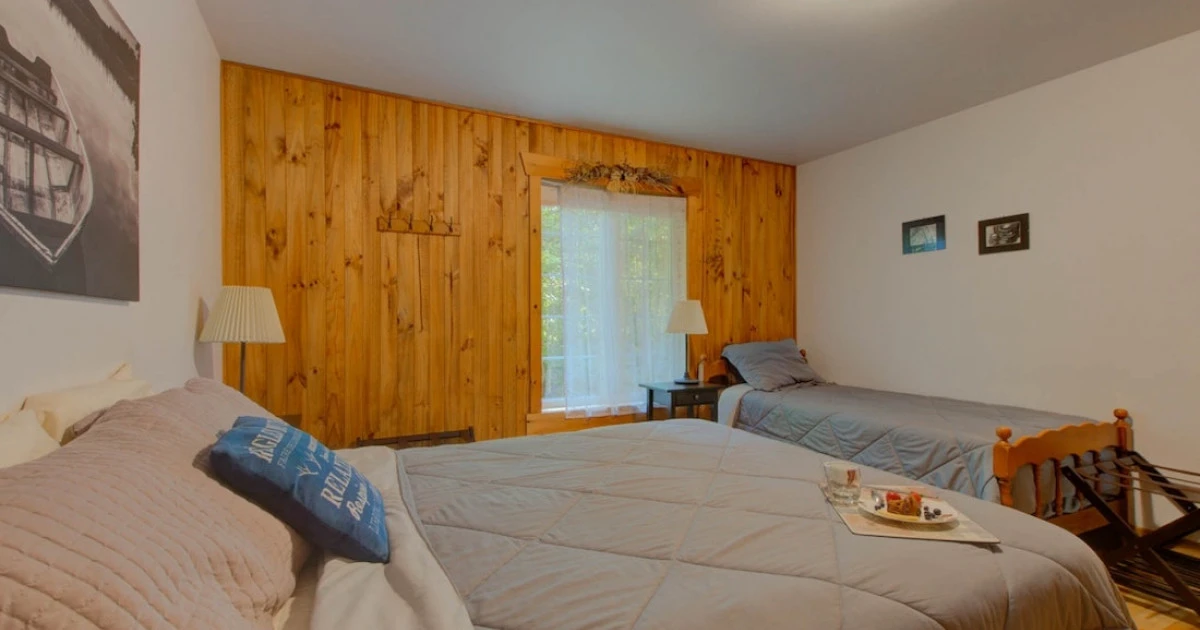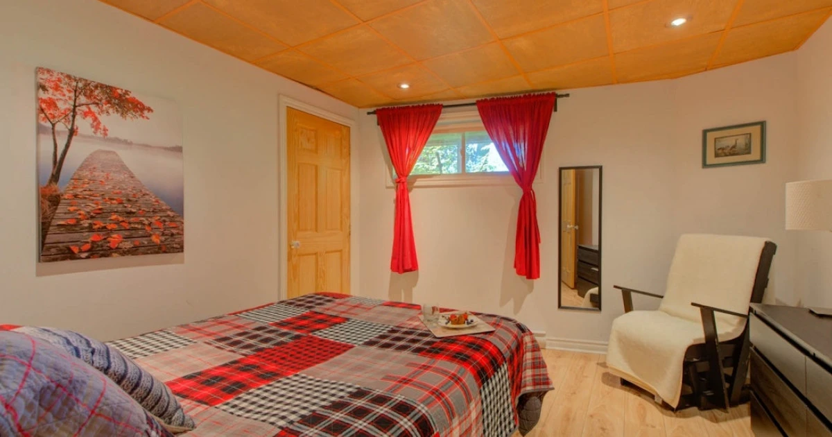 Chambre 2 (rez-de-chaussée) : 1 lit queen et 1 lit simple