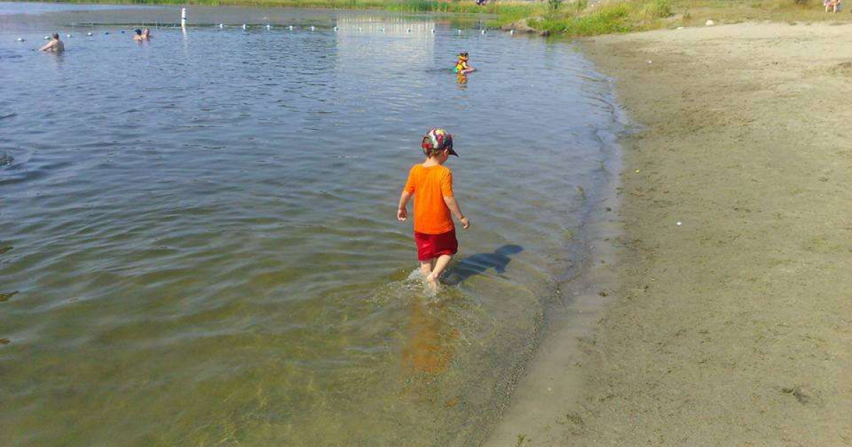 In summer, this beach is the place to be! You'll find picnic areas, a water slide, four beach volleyball courts and parking.