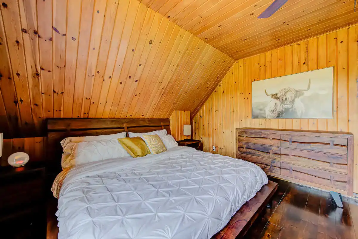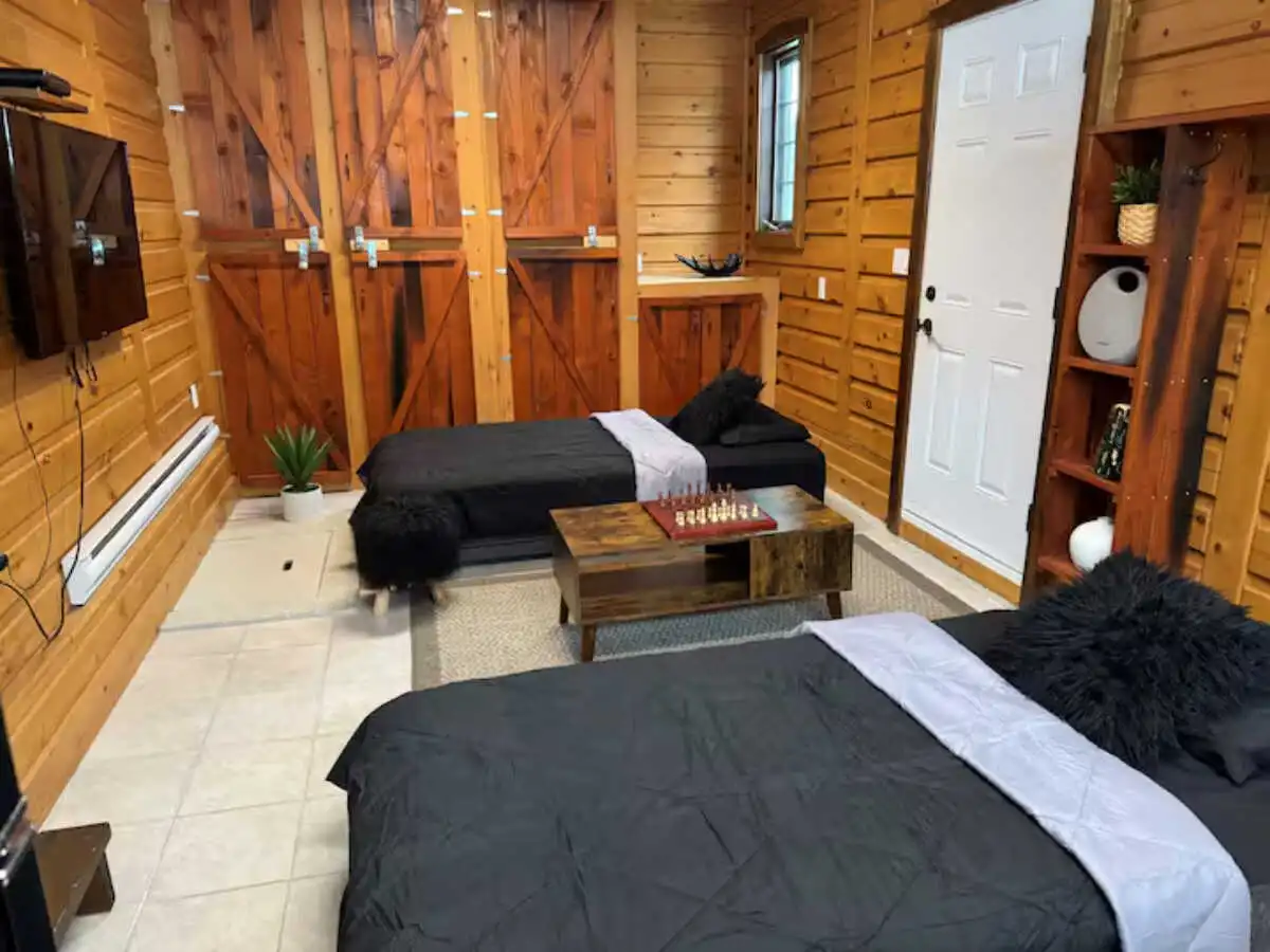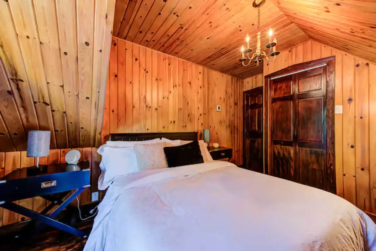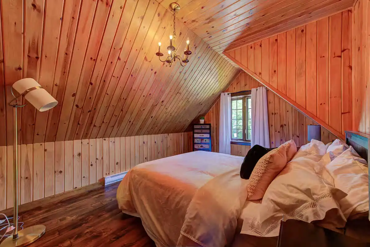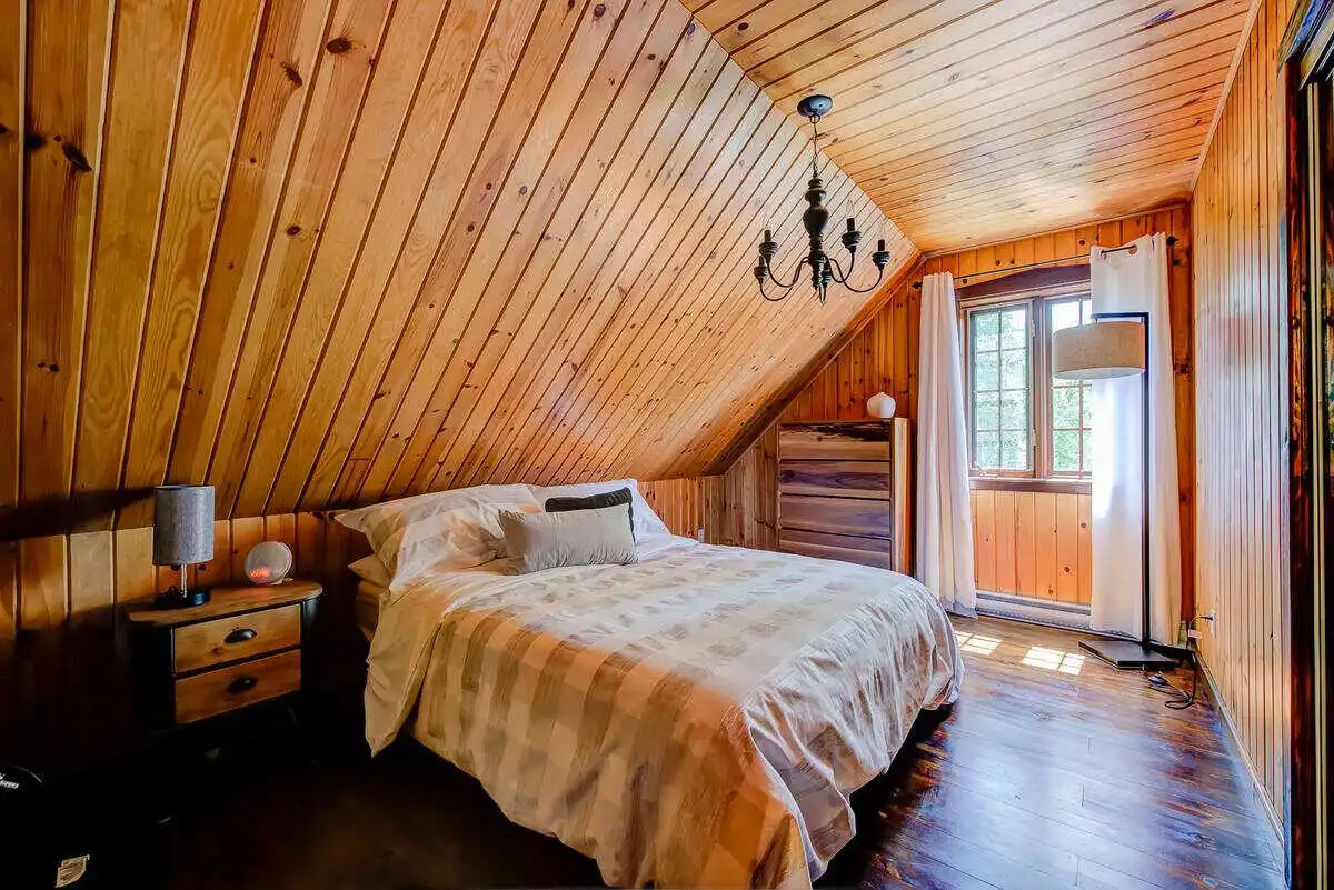 Upstairs, you'll find 4 cozy bedrooms with wood paneling that offer a unique cachet for your guests!