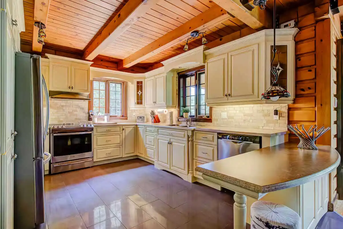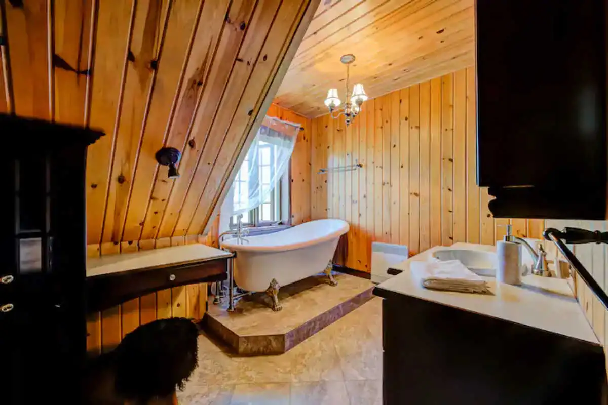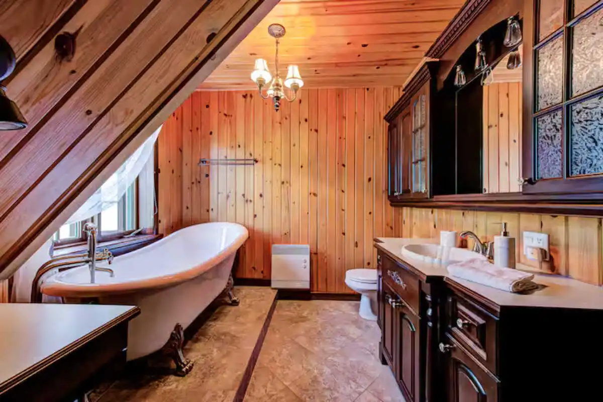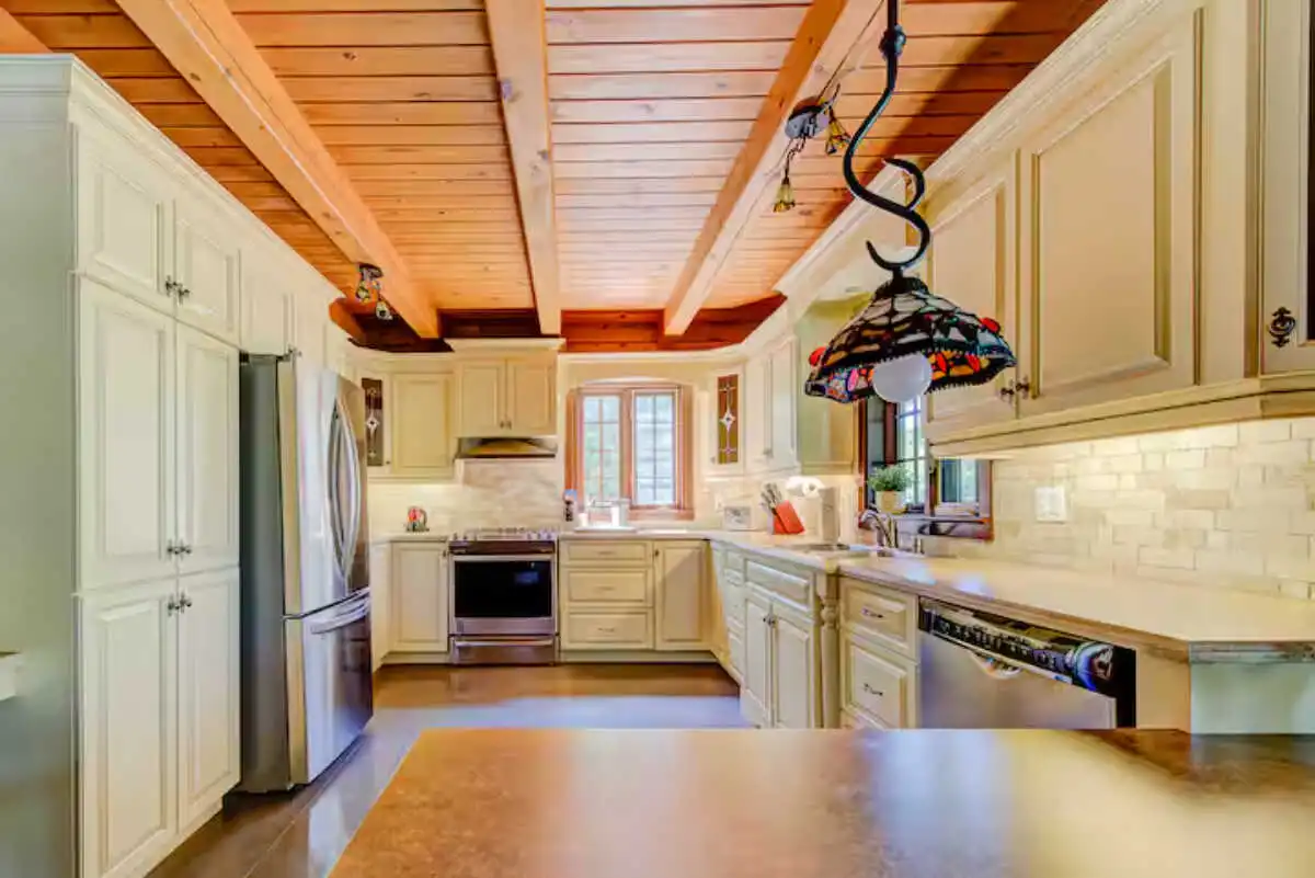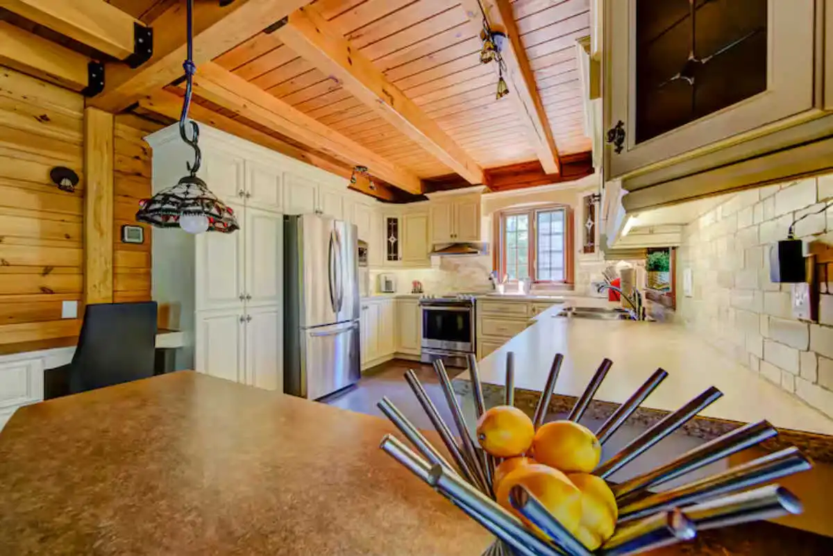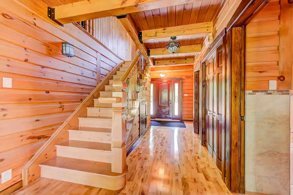 Upstairs, you'll find 4 cozy bedrooms with wood paneling that offer a unique cachet for your guests!