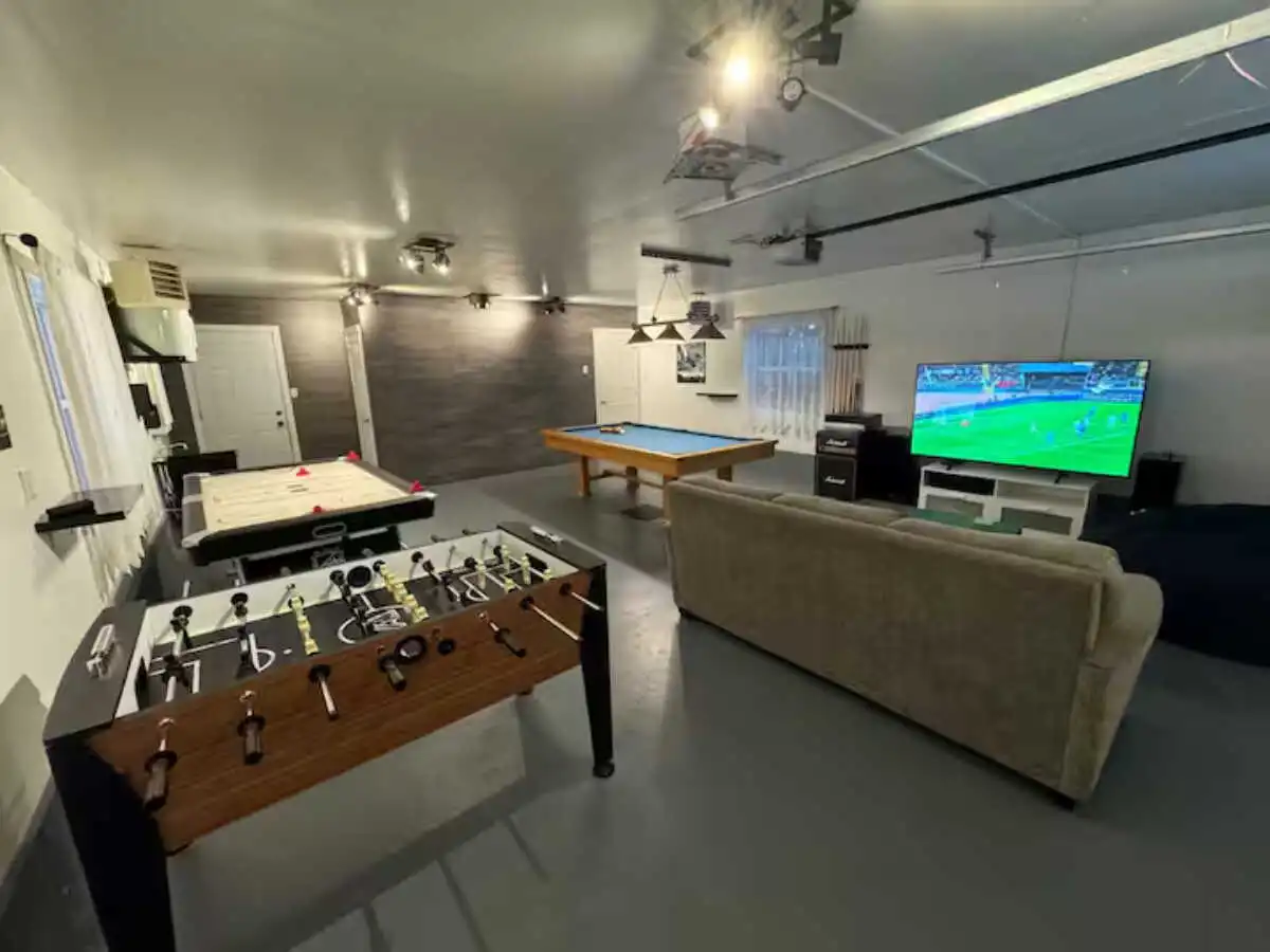 This includes a home theater with 75" TV, pool table, foosball table and air field hockey table. A memorable stay awaits you!