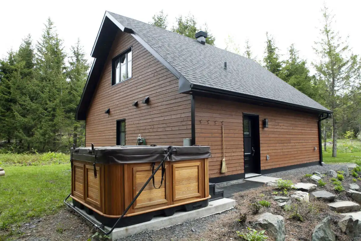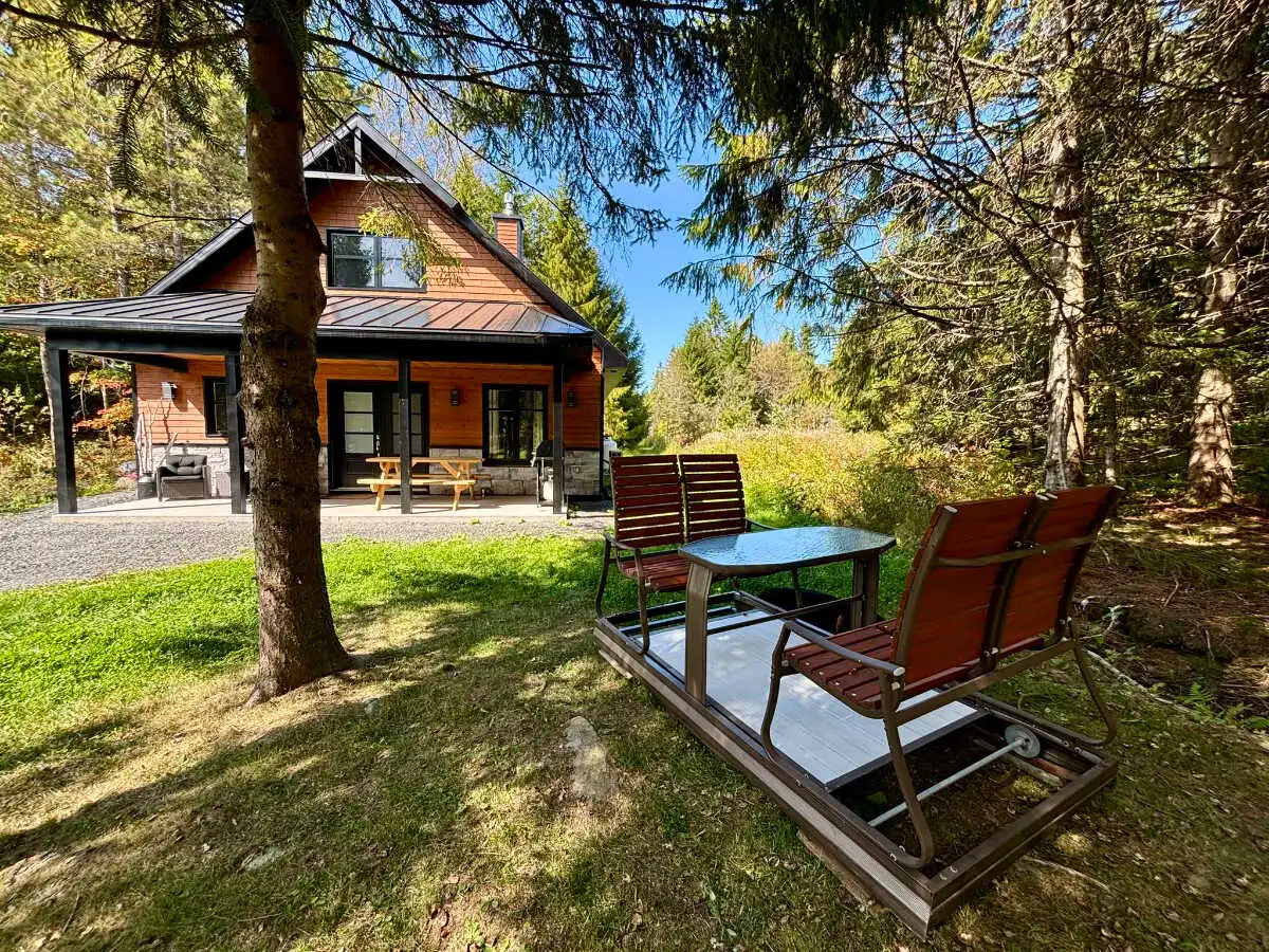 Located on a large wooded lot, our chalet offers a peaceful escape with its warm atmosphere and assured comfort. You'll enjoy the privacy of the spa, access to the lake and several nearby hiking trails. Inside, you'll find everything you need to spend quality time with family and friends, whether relaxing in a hammock by the fireplace or playing a board game after a fondue dinner!
