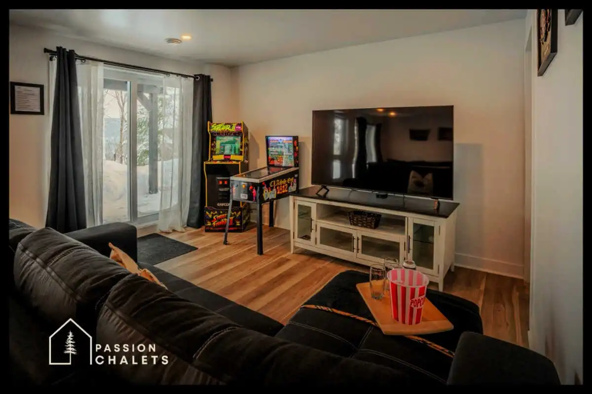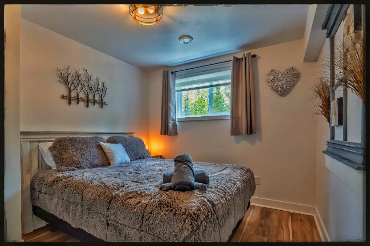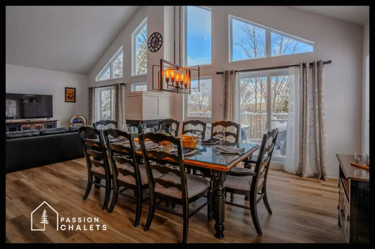 With access to magnificent Lac Bourgeois (swimming/water sports) and a breathtaking view of a peaceful lake, our chalet offers a serene experience in the heart of the mountains.