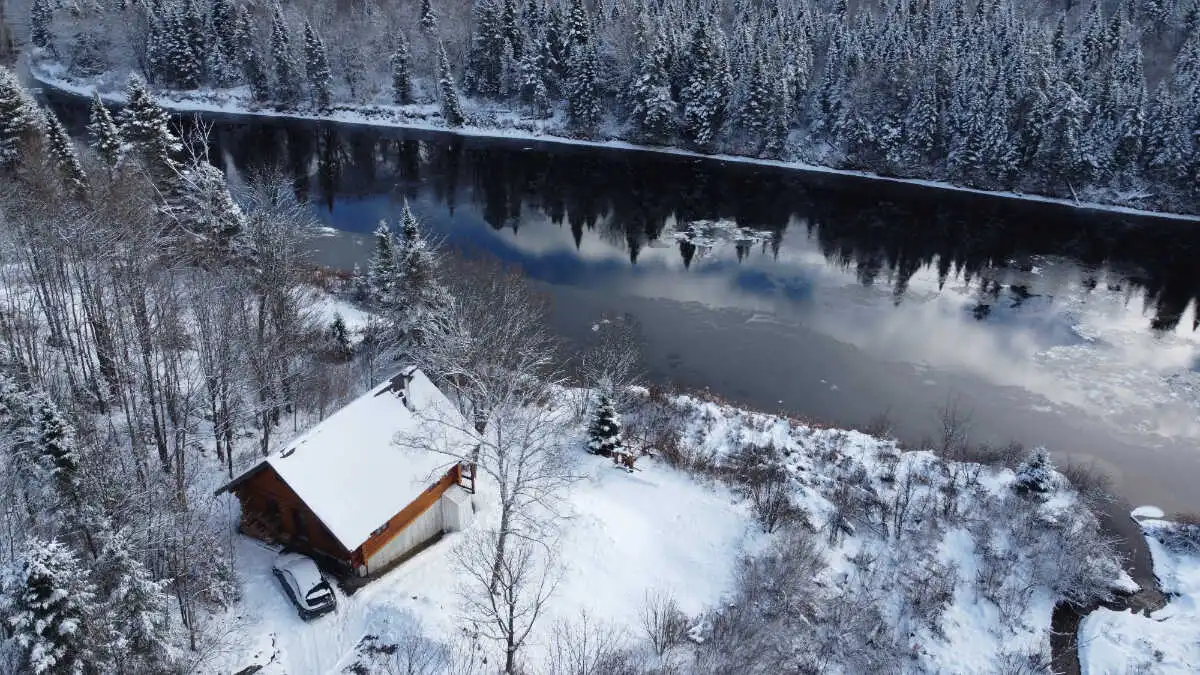 A magnificent 4-season log cabin nestled on the banks of the peaceful Batiscan River, at **Lac-aux-Sables** in **Mauricie** (1h15 from Quebec City, 1h from Trois-Rivières, 2h30 from Montreal). The view of the river from the large balcony is simply... **breathtaking**.... Read more