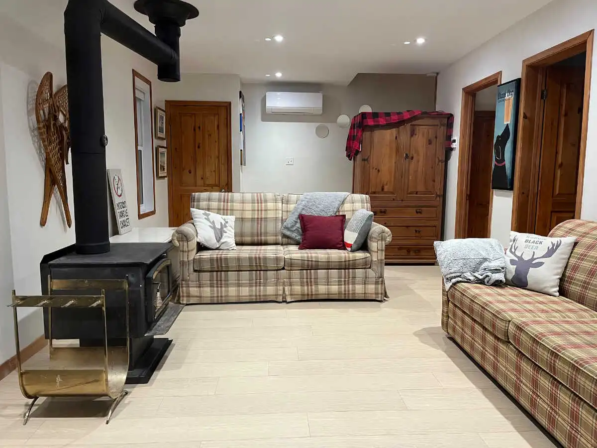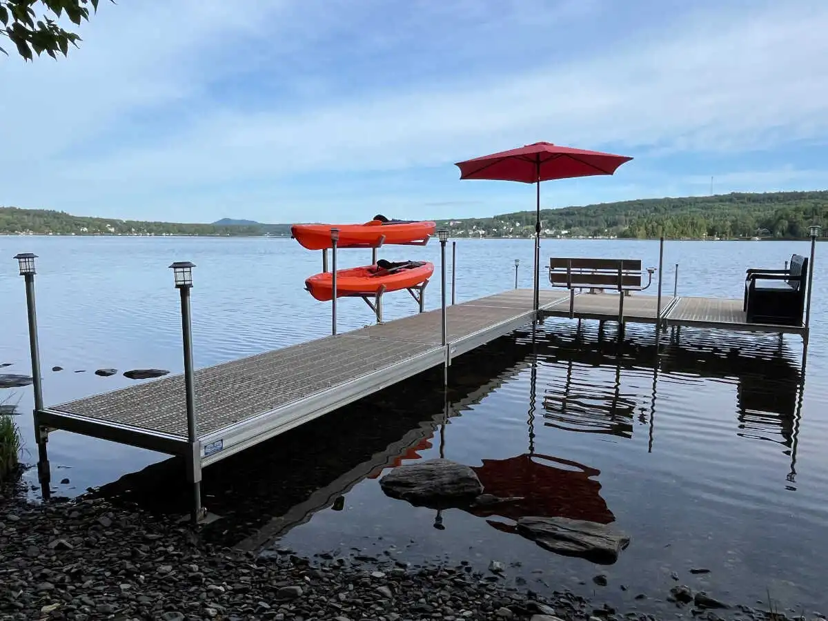 2-storey chalet with panoramic windows on a large, intimate lot for a relaxing experience with family and friends, with SPA and unique private access to Lac Etchemin. You'll have an incredible view of Lac Etchemin, a magnificent 5 km-long body of water, Mont Orignal, the village and exceptional nature.