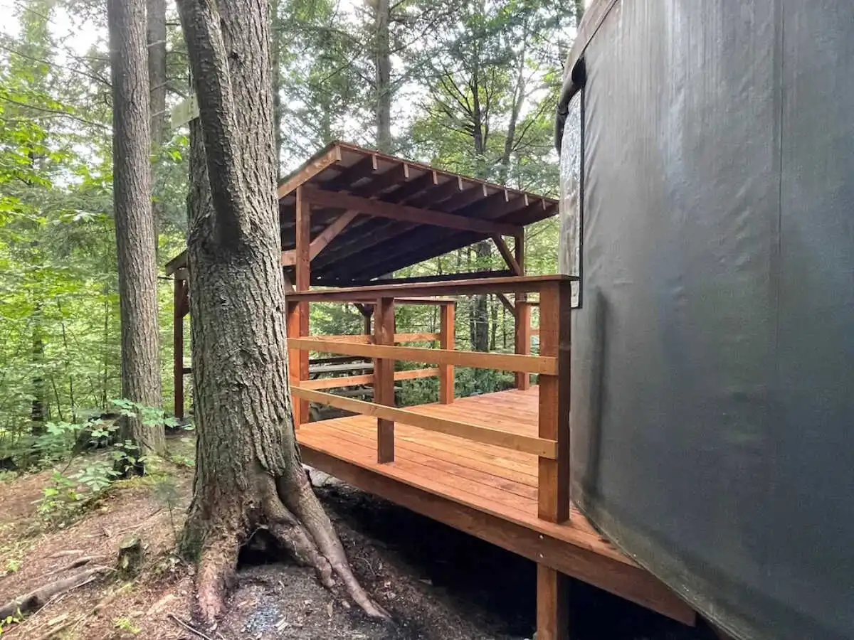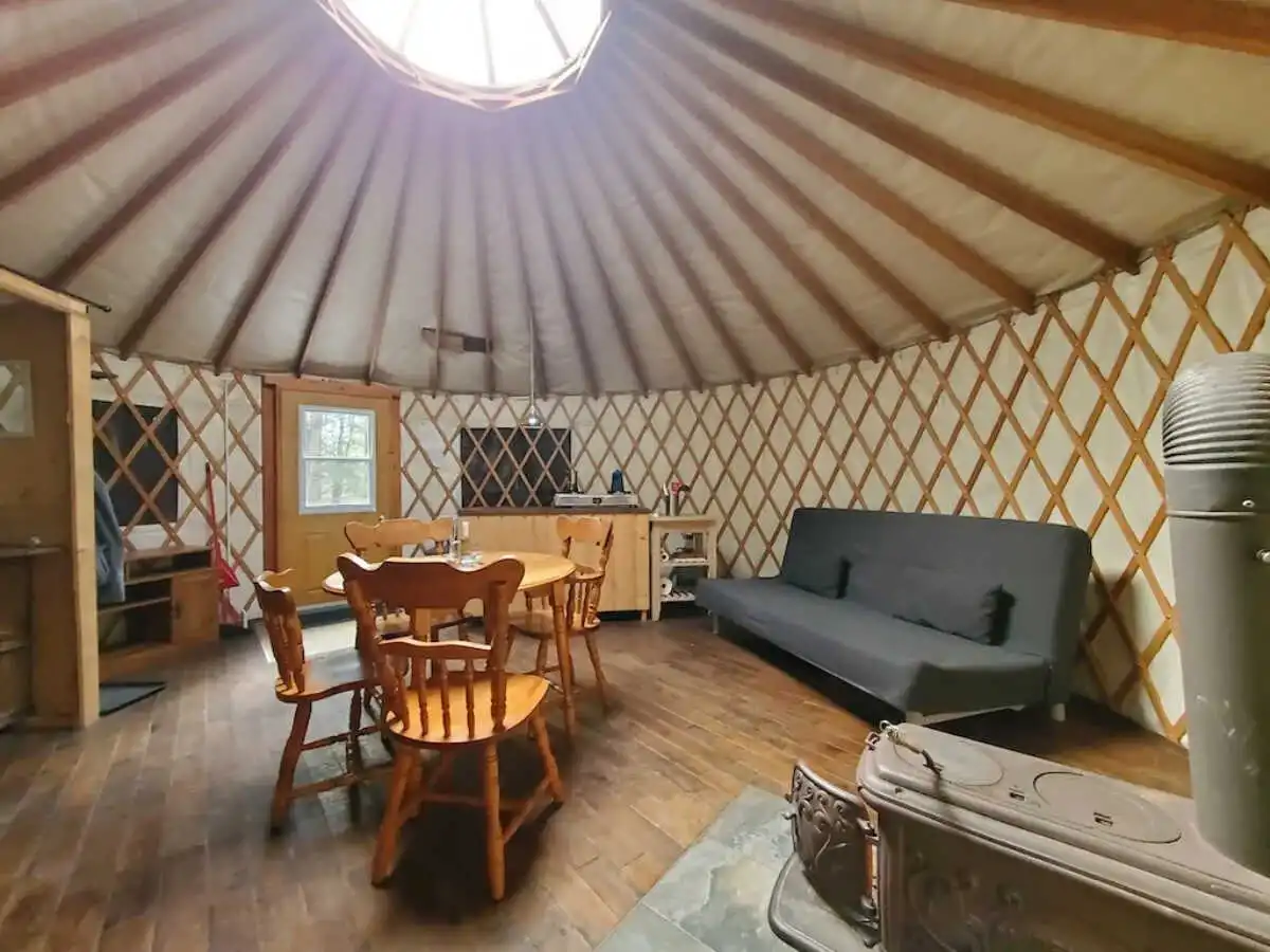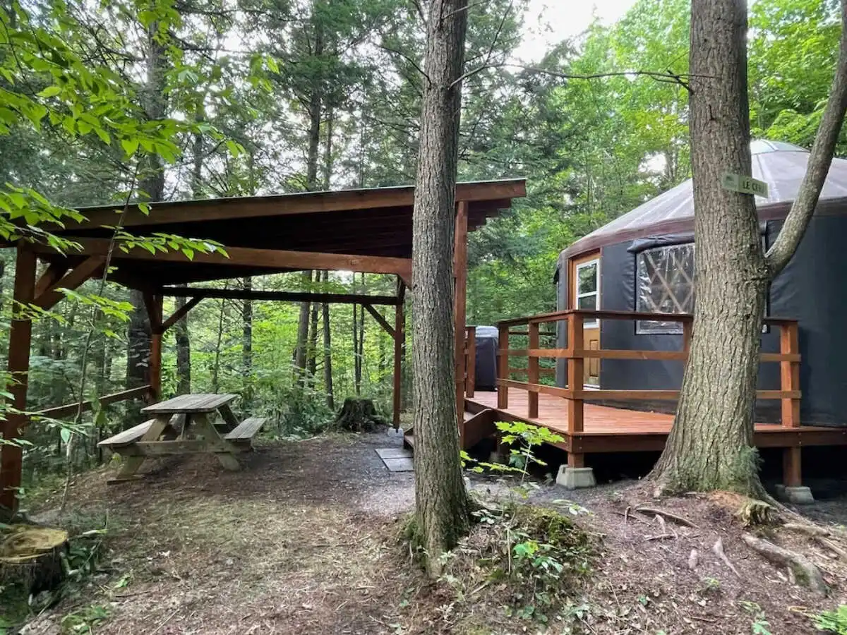 Perched atop a hillside, this 20-foot yurt is set in a magnificent hemlock forest. Lit by solar energy and with no running water, it offers a rustic refuge in the heart of nature. A true birdwatcher's paradise, where every day reveals an enchanting bird show. Prepare to be captivated by the beauty of this unique place.