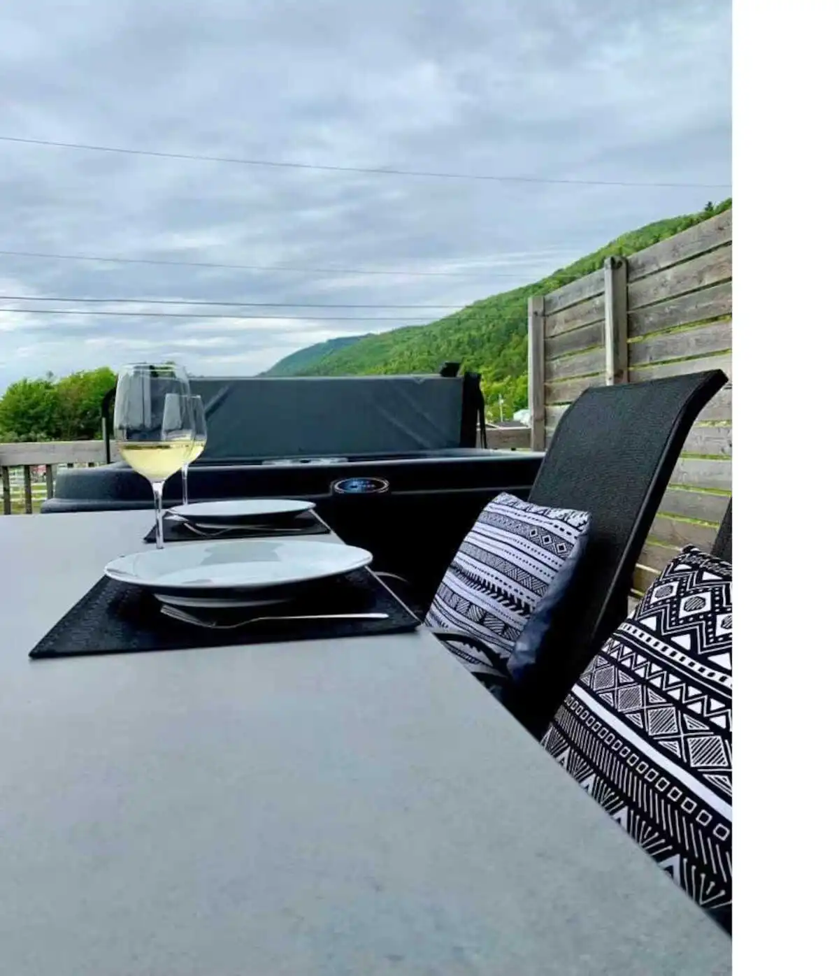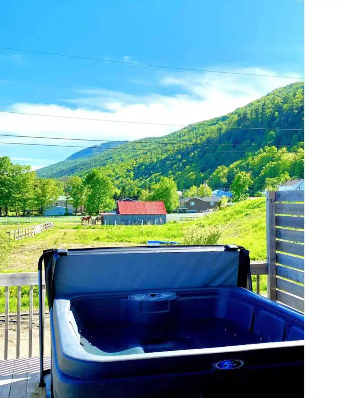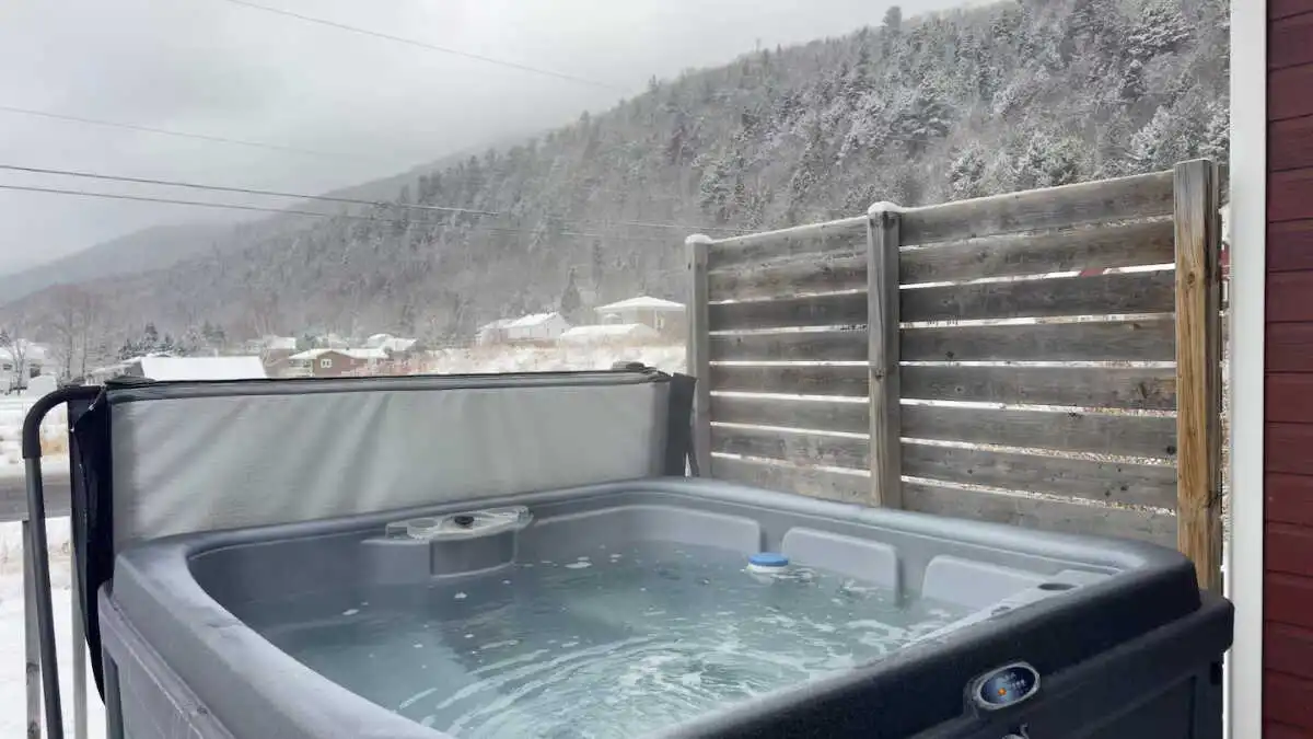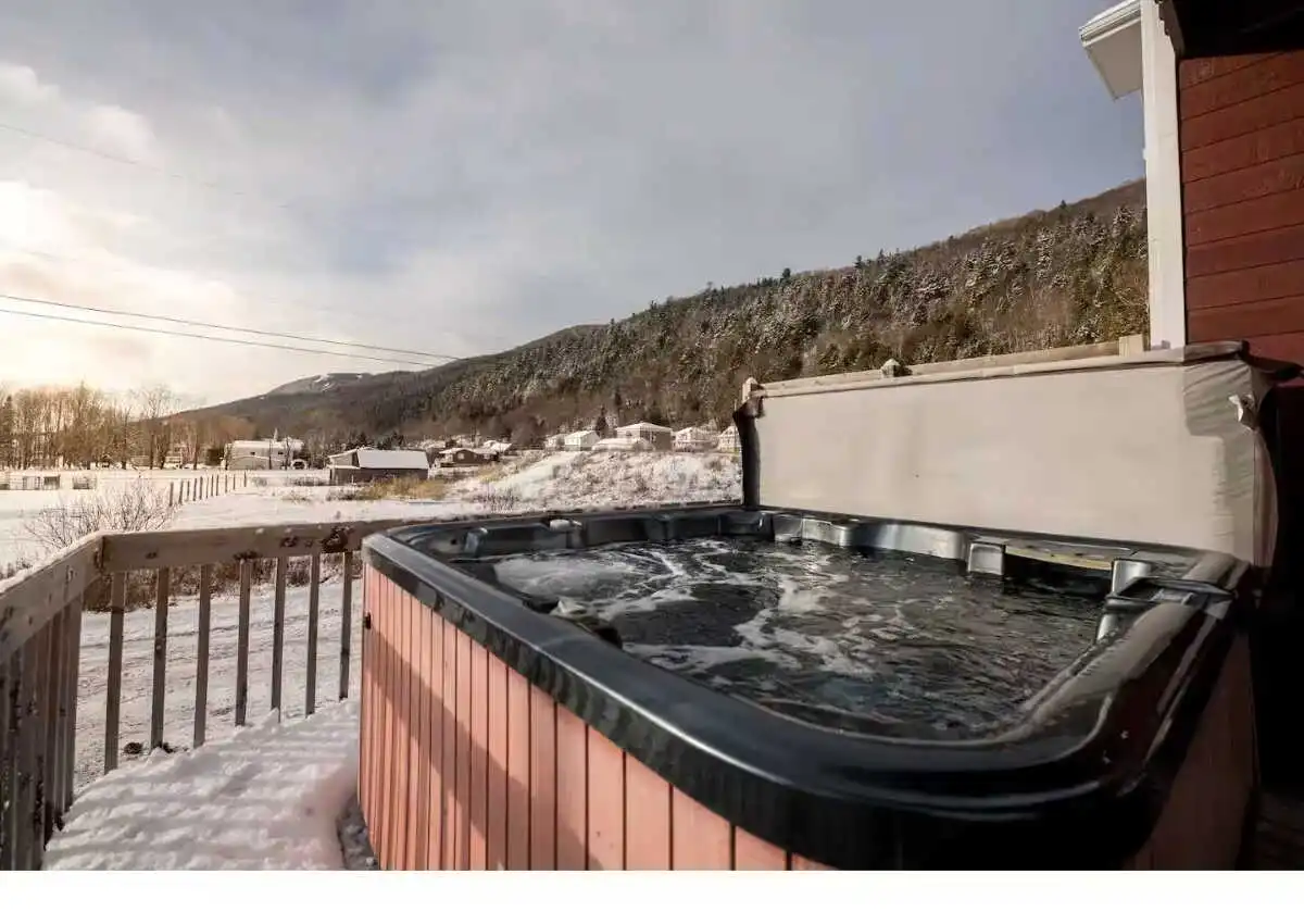 The experience doesn't stop at the chalet door, as outside you can enjoy a spacious terrace with private spa, offering a splendid view of the river and Le Massif de Charlevoix.