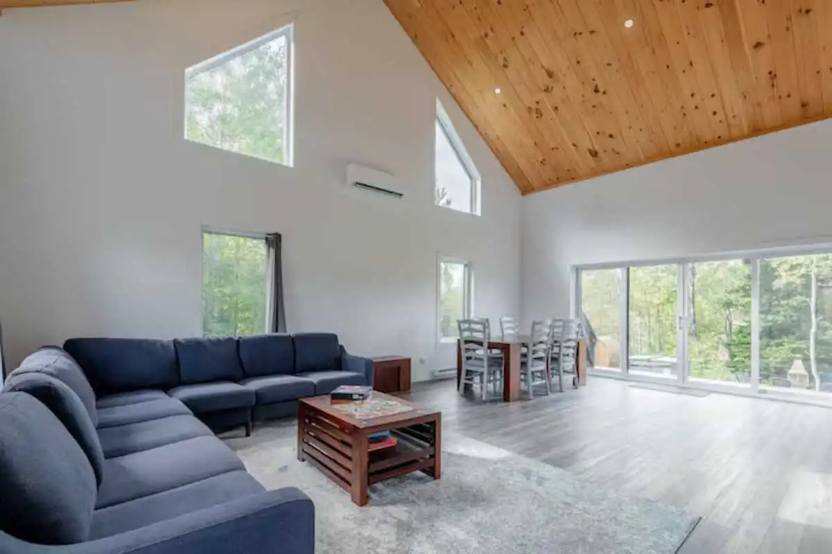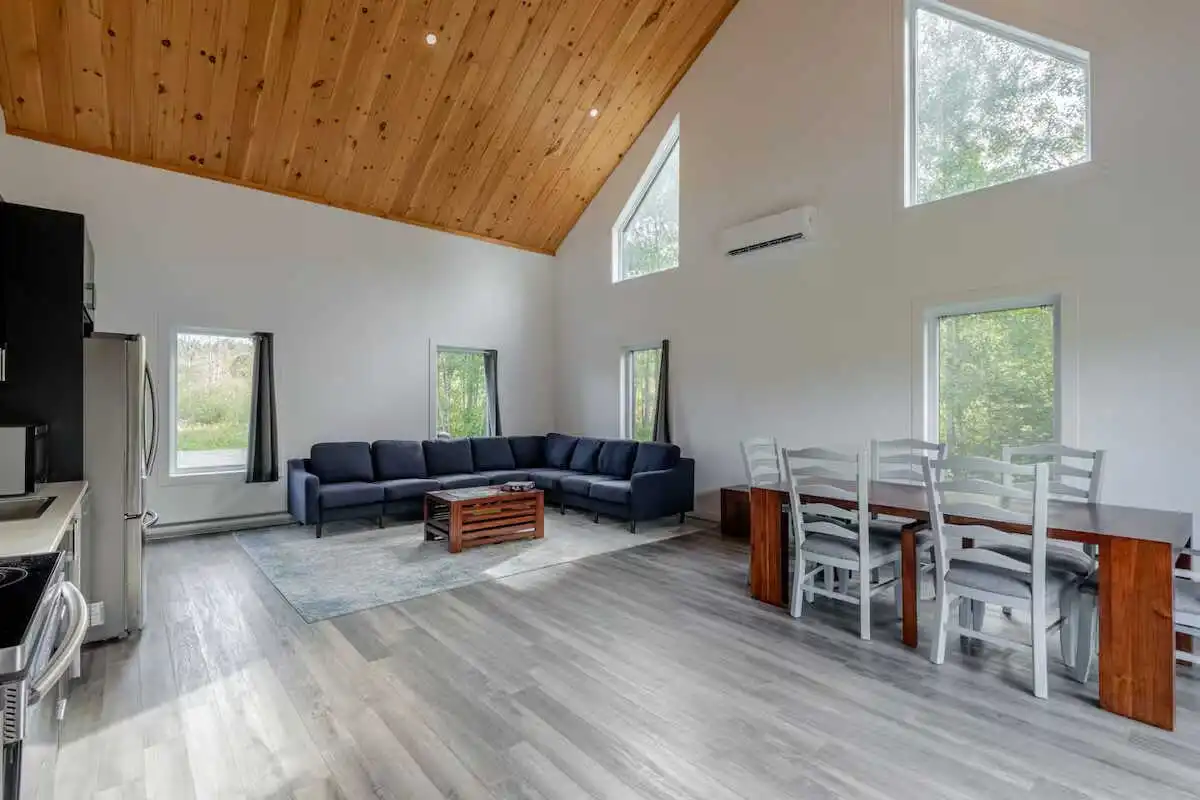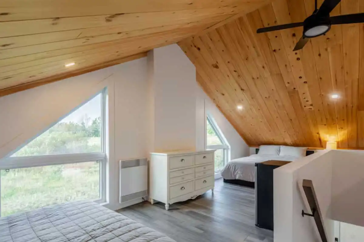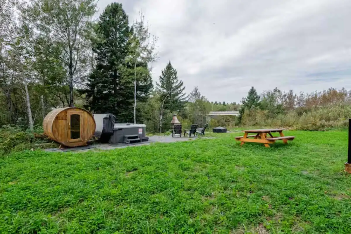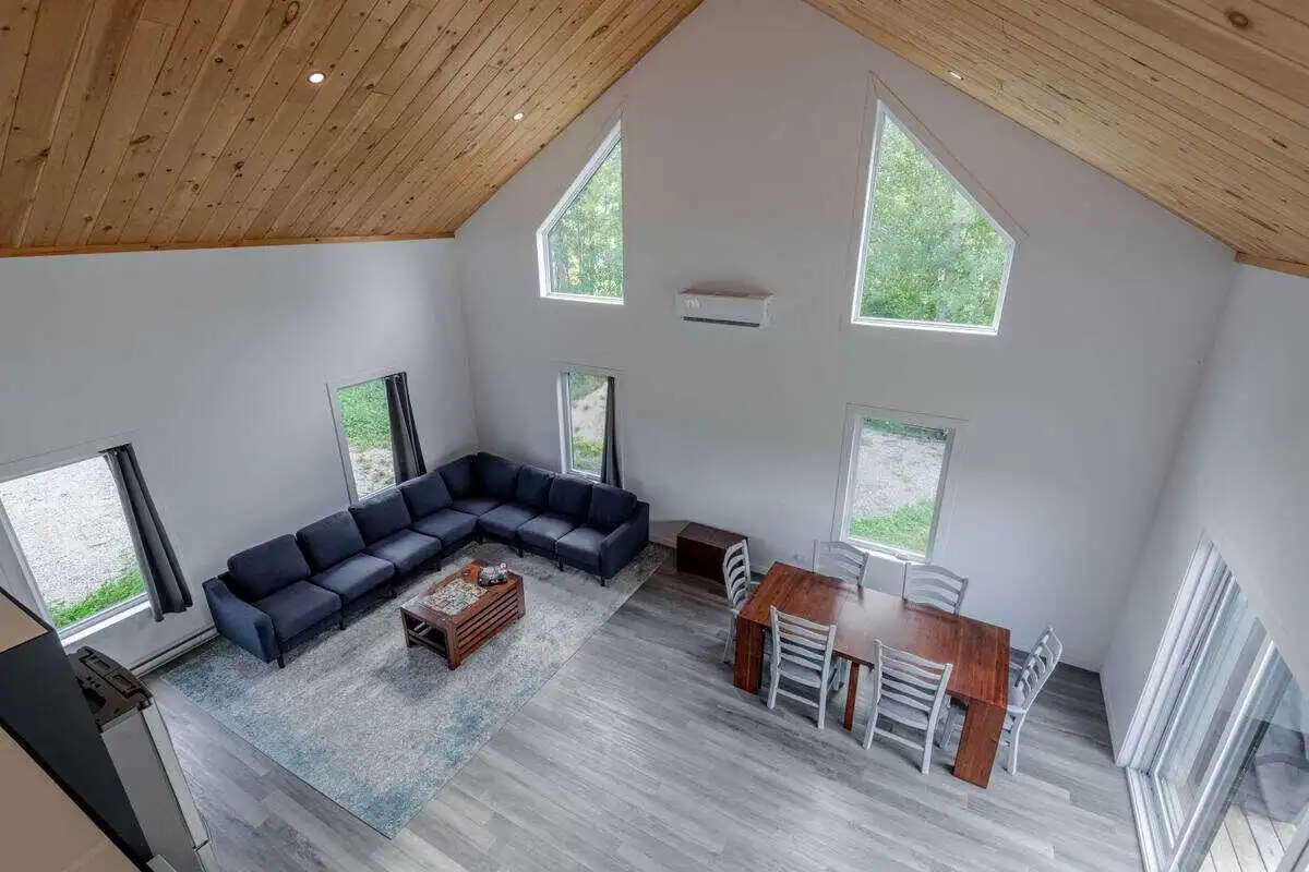 A nature getaway awaits you at Domaine Batiscan, located in Saint-Adelphe in the Mauricie region. Set on 200,000 square feet of land, this cottage can accommodate up to six people. It features two enclosed bedrooms: a mezzanine master bedroom with two queen-size beds sepa... Read more