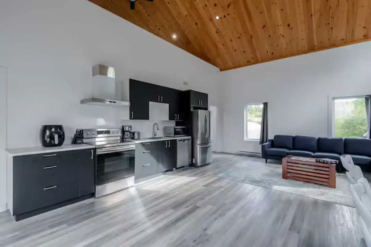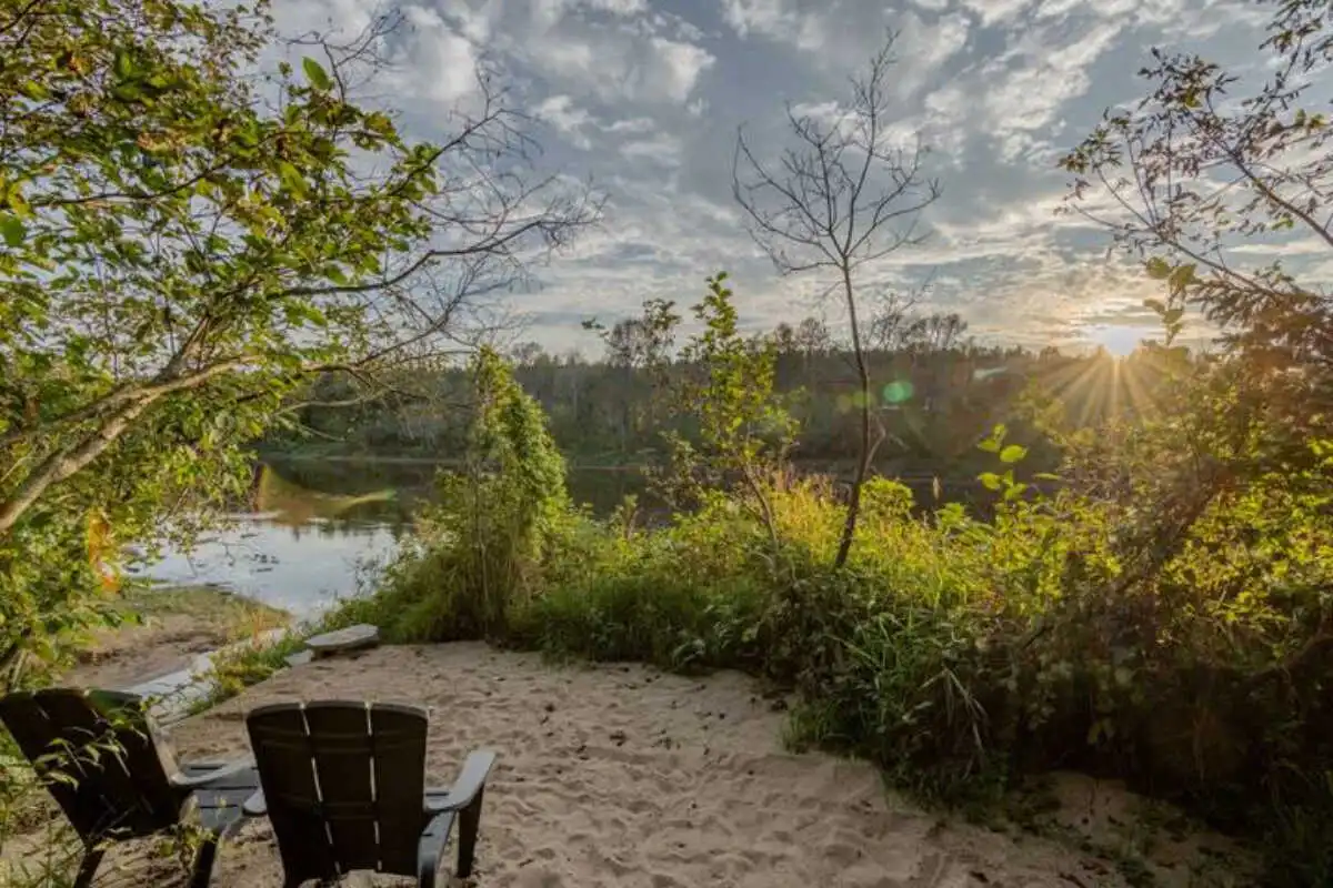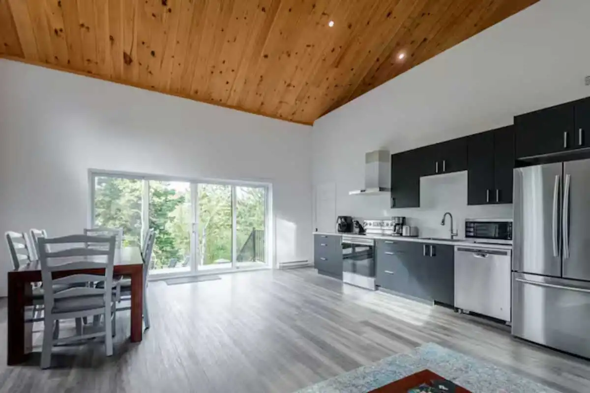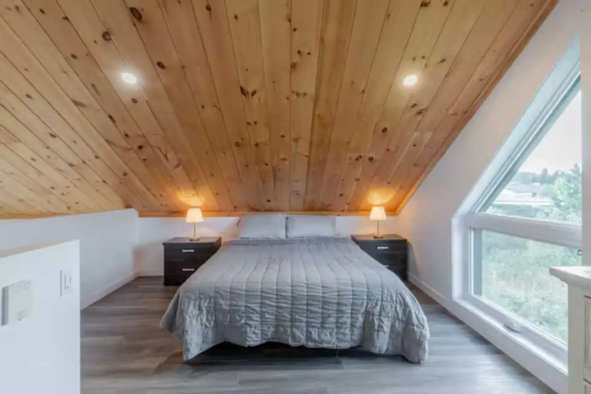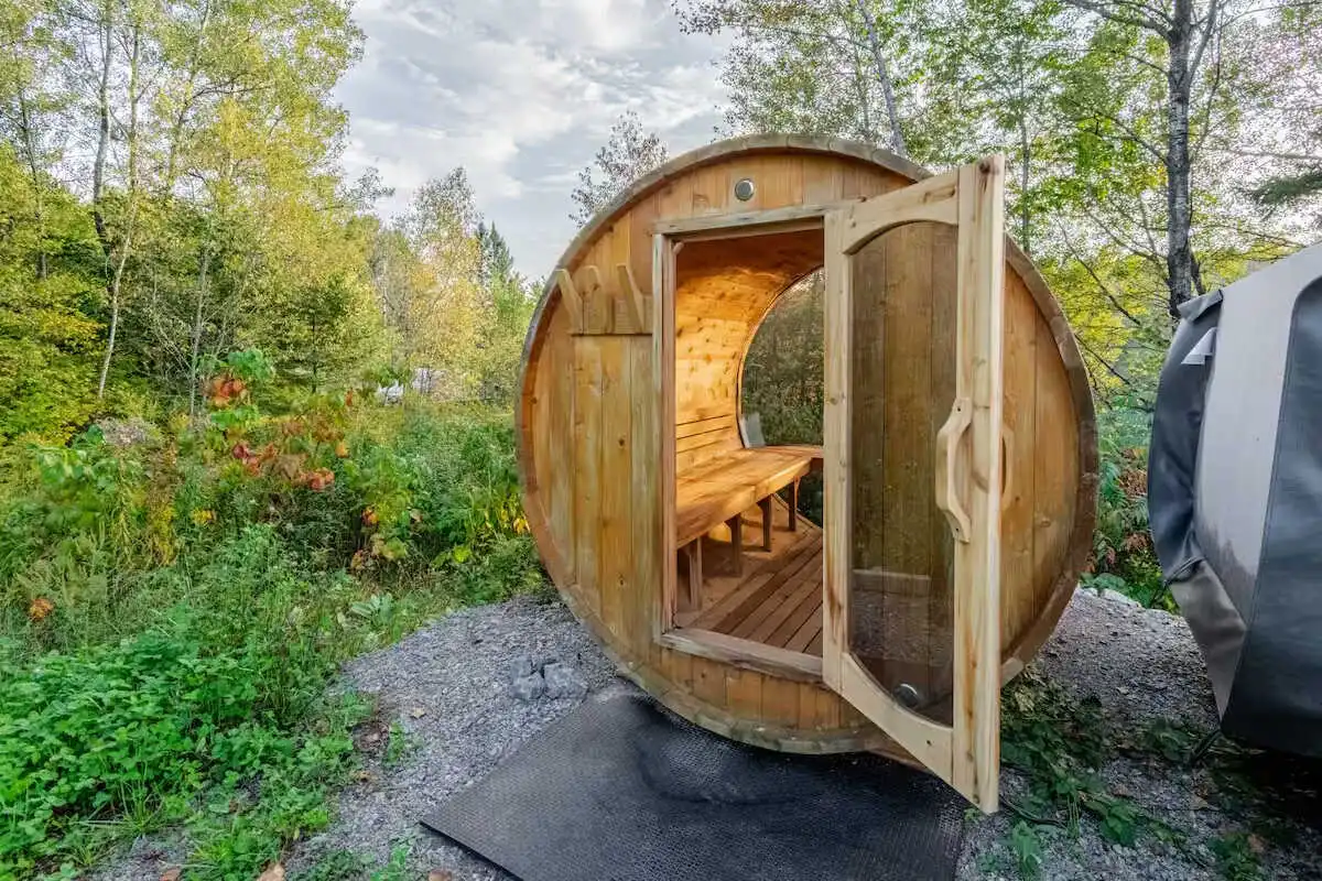 A nature getaway awaits you at Domaine Batiscan, located in Saint-Adelphe in the Mauricie region. Set on 200,000 square feet of land, this cottage can accommodate up to six people. It features two enclosed bedrooms: a mezzanine master bedroom with two queen-size beds sepa... Read more
