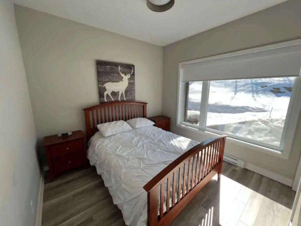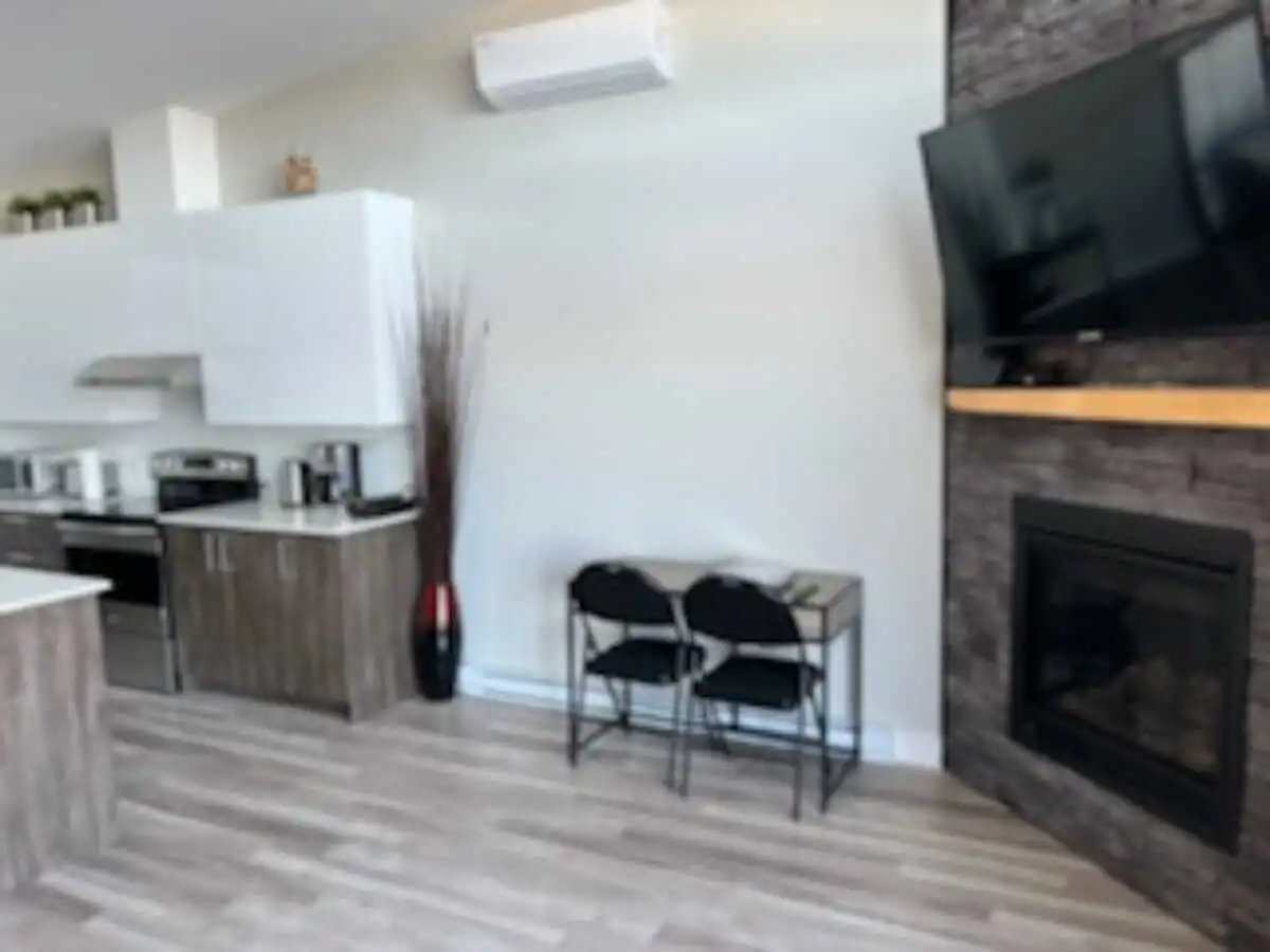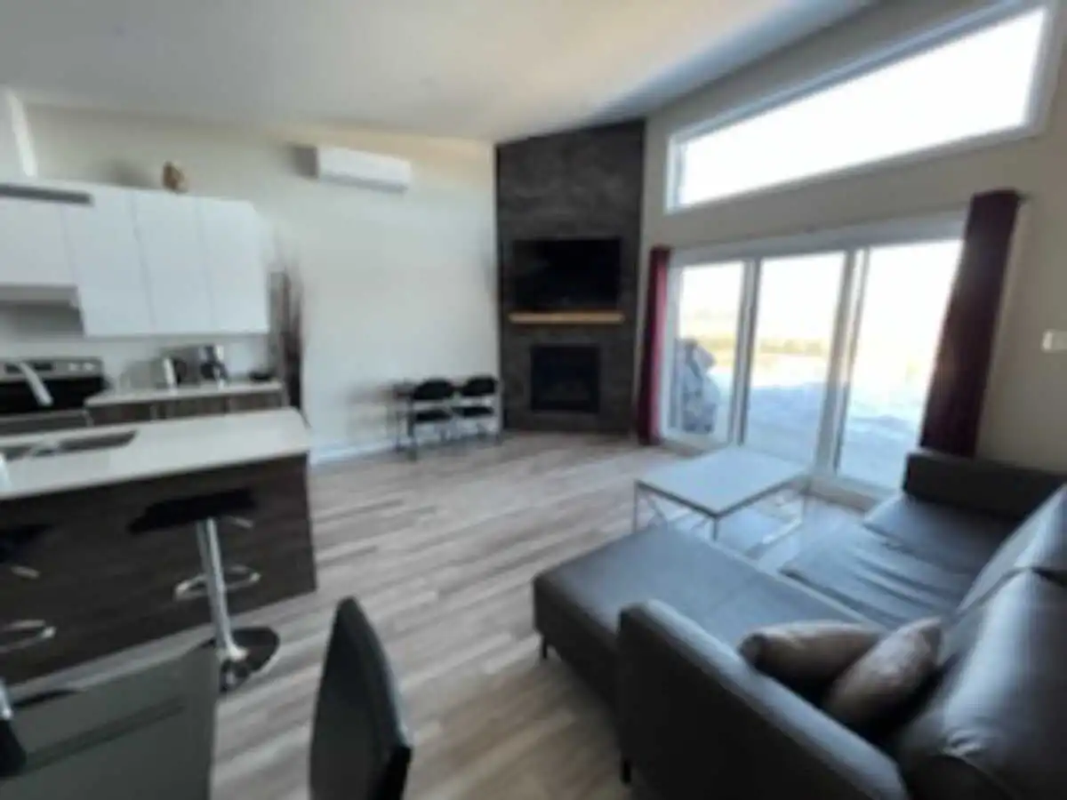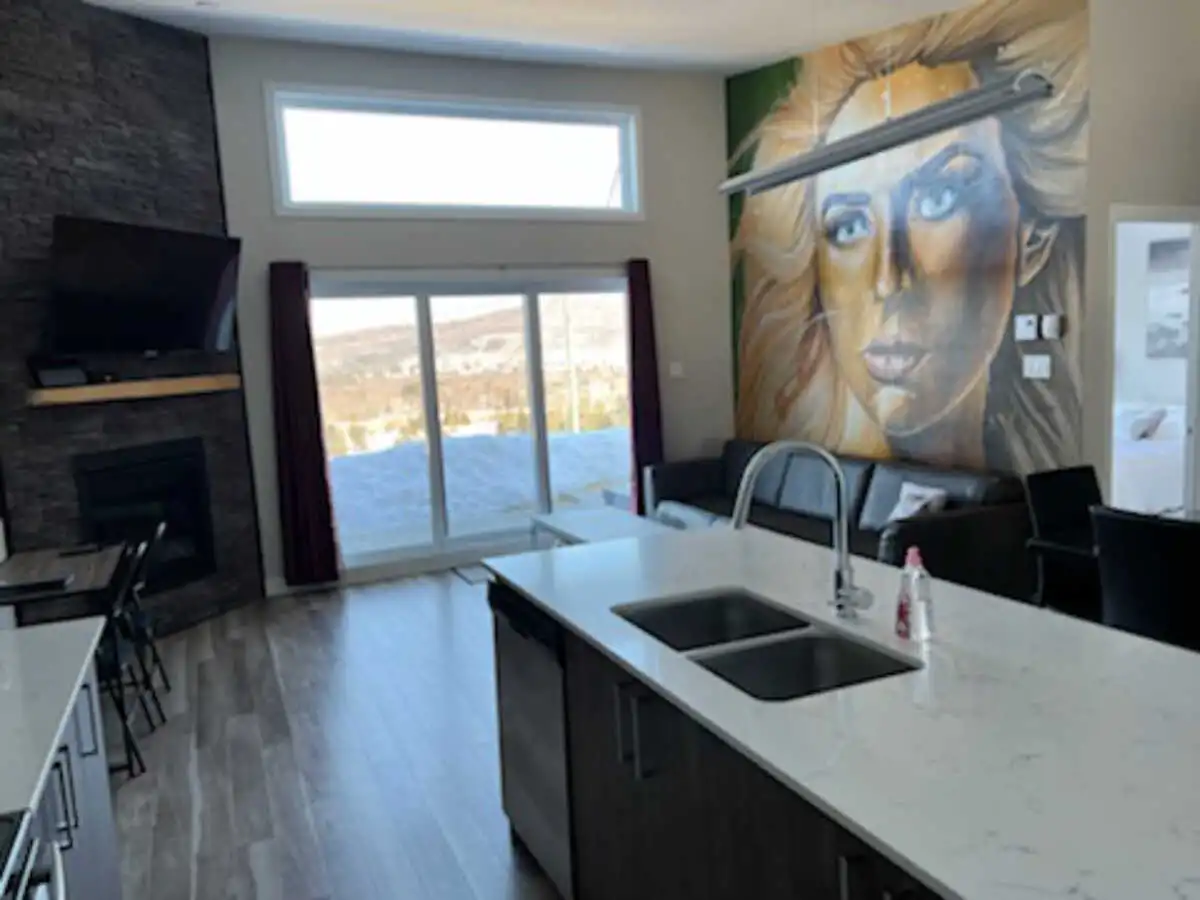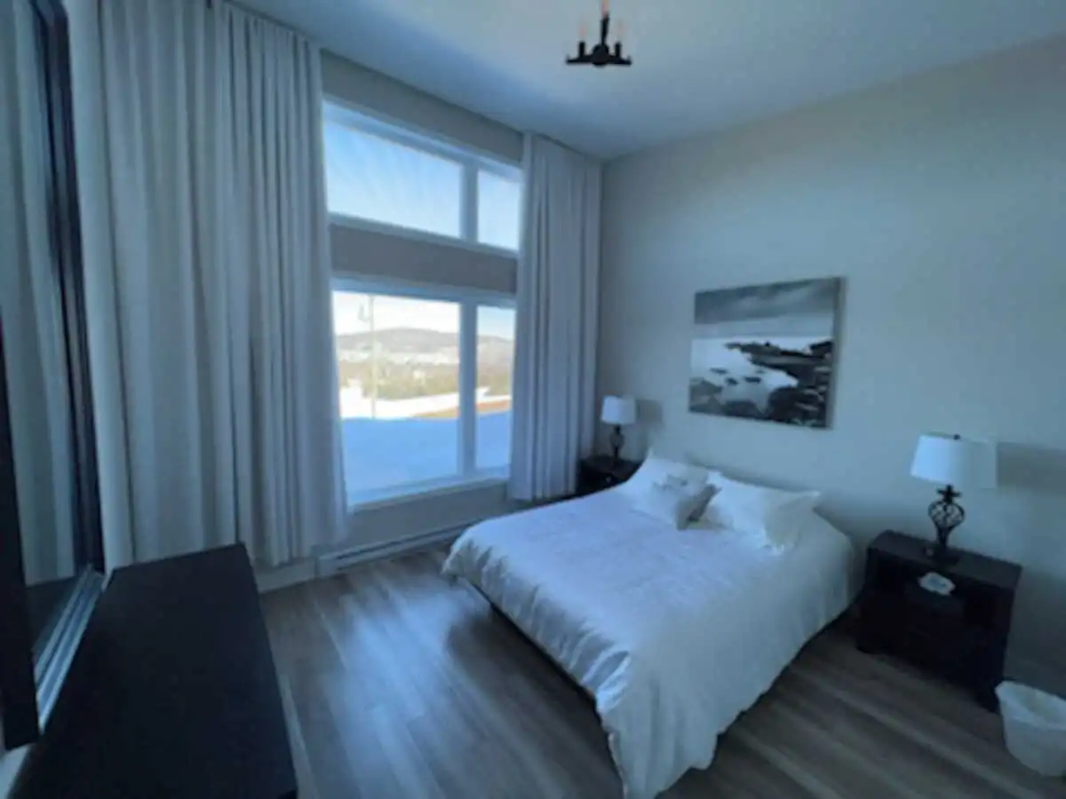 Luxury condo with an incredible panoramic view, outdoor spa usable year-round. Warm and clean atmosphere. All services nearby (15 min. max. ): pharmacy, grocery store, convenience store, gas station, and several restaurants.