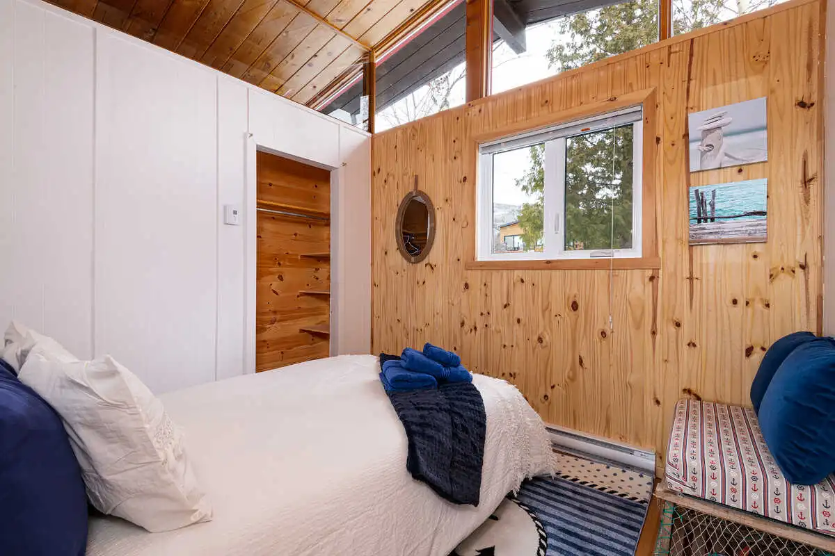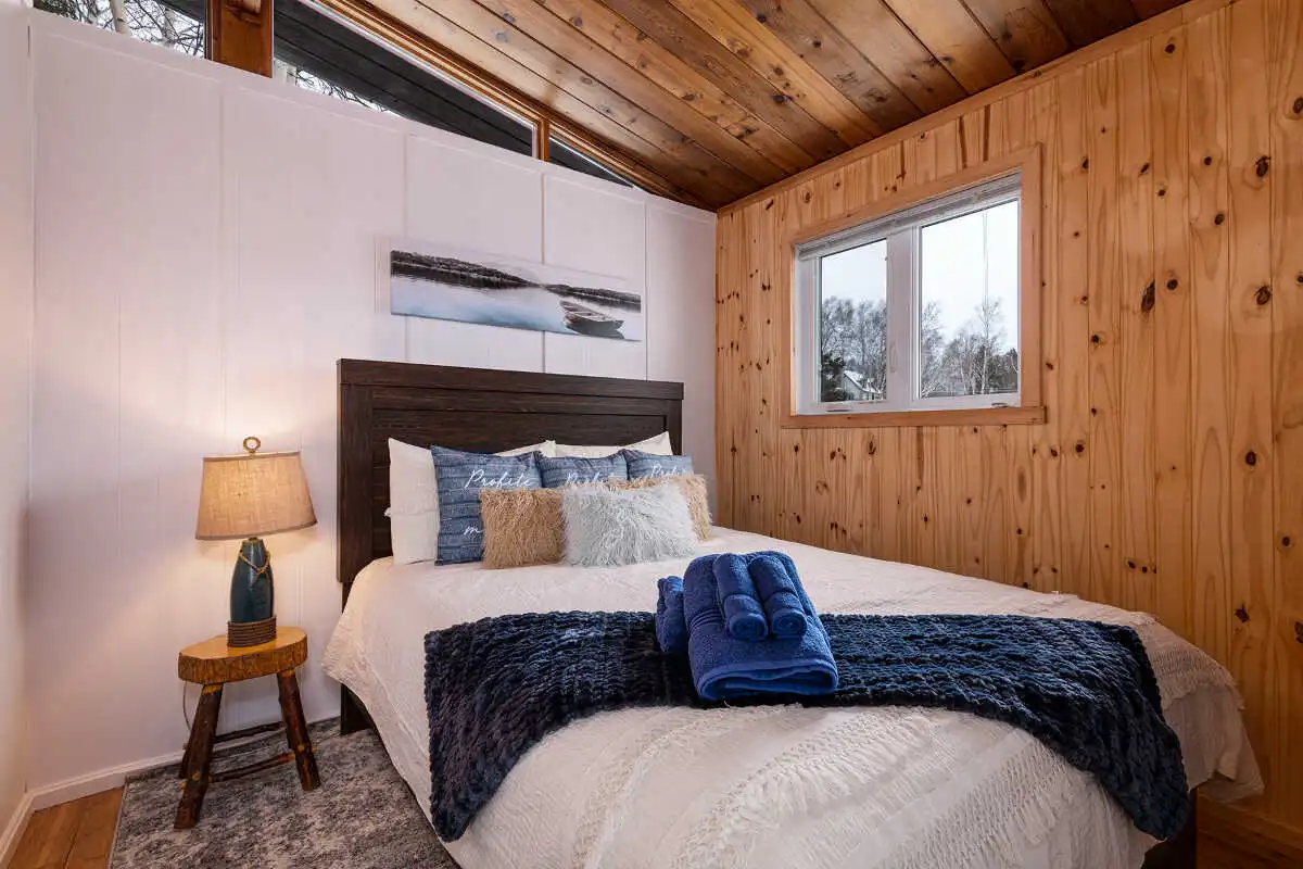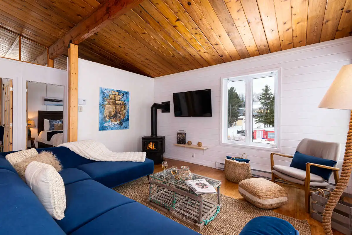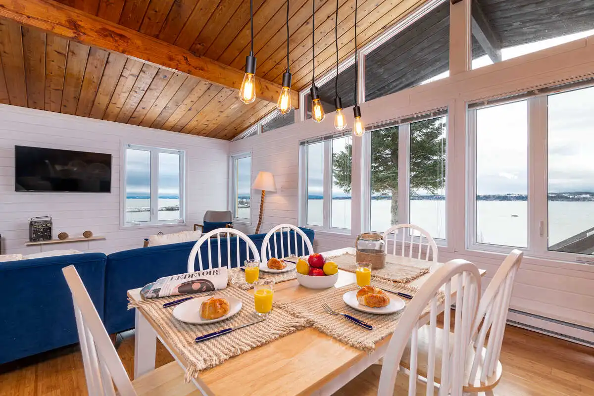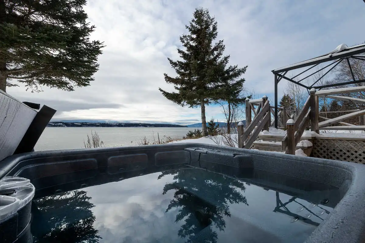 This sublime chalet nestled opposite the Isle-aux-Coudres, will seduce you with its superb panorama, its cozy comfort, its high-end amenities and its nautical look. This house will give you the impression of having both feet in the water. Come and relax in the SPA while observing the boats that will pass under your nose. A true haven of peace, Cap à l'Ile is a must-see destination.