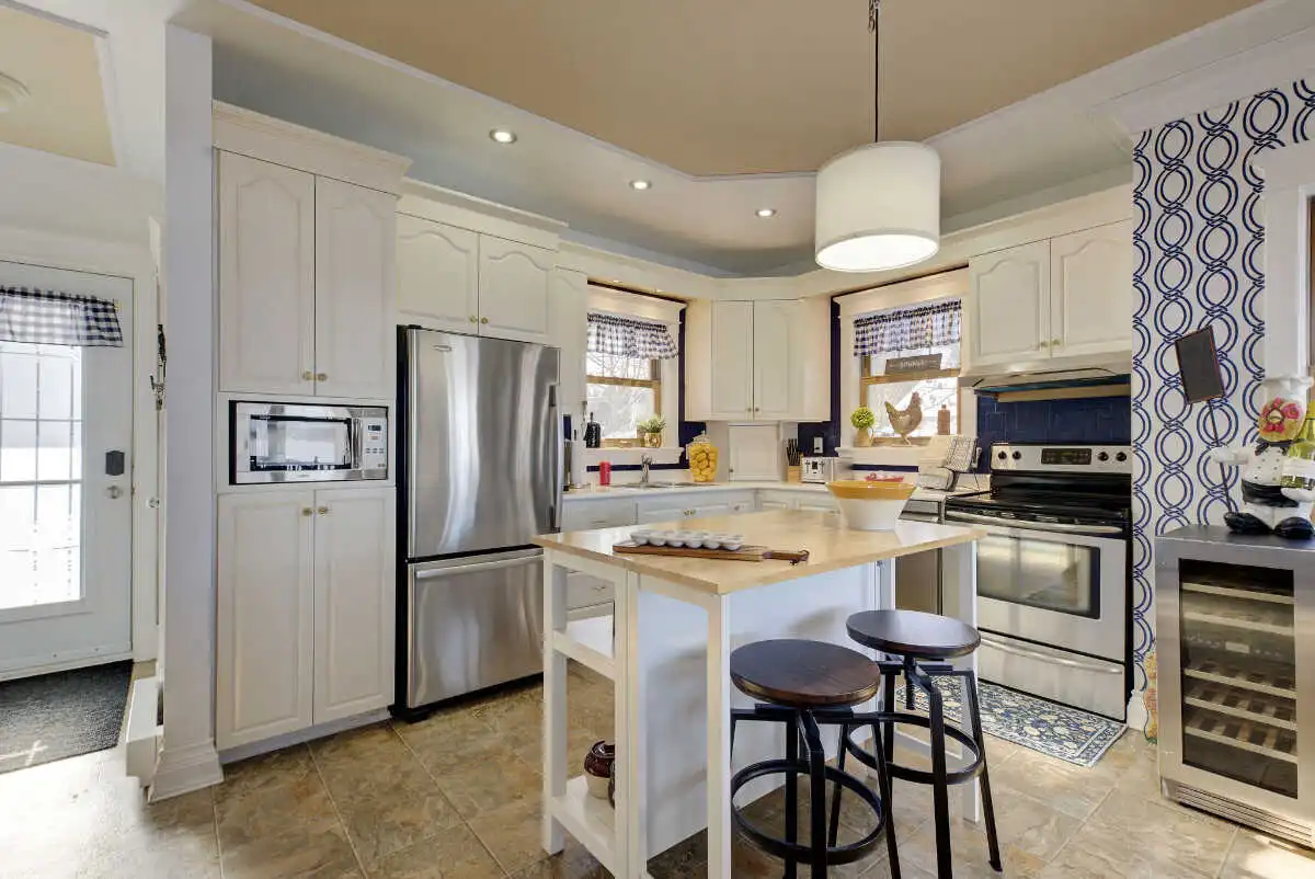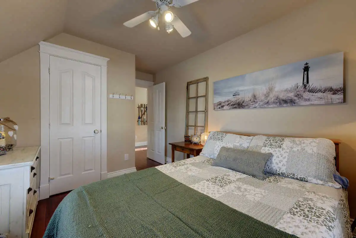 Three bedrooms with distinct charm, a gas fireplace, a dock in season…