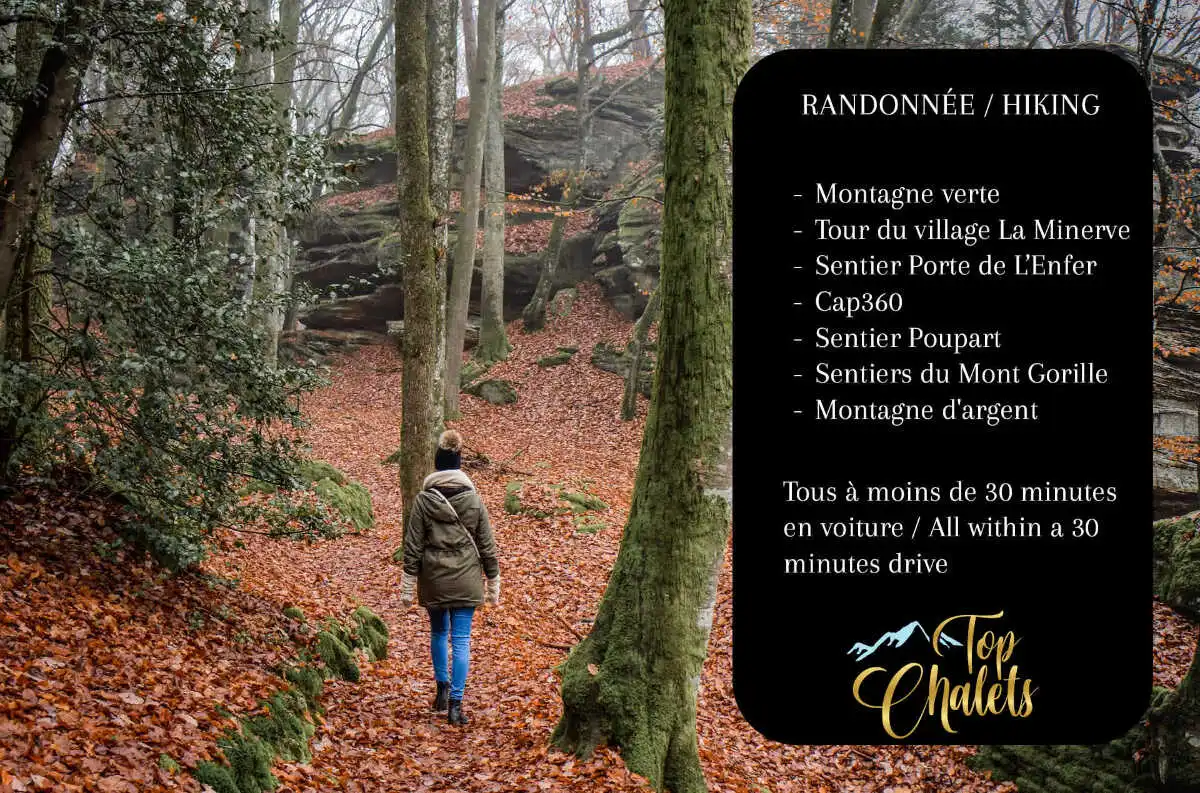 For nature lovers, several hiking trails await: explore Montagne Verte, just 23 minutes from the cottage, or venture onto the magnificent Accès-nature Laurentides trails, 45 minutes away. Domaine Saint-Bernard (35 minutes) is also a perfect spot for hiking, cross-country skiing in winter, or swimming in summer.