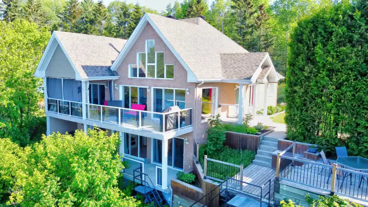 Le Repère offers you paradise in the heart of the Mauricie region. Located in Saint-Roch-de-Mékinac, this splendid property is built very close to the edge of the Saint-Maurice River, offering a breathtaking view of the river panorama. On the other side of the river is the magnificent Parc de la Mauricie, overlooking a fine sandy beach ideal for swimming. The blue of the river on a sunny day, sunrises and sunsets, or the moon shining on the water, provide deep, unforgettable emotions.