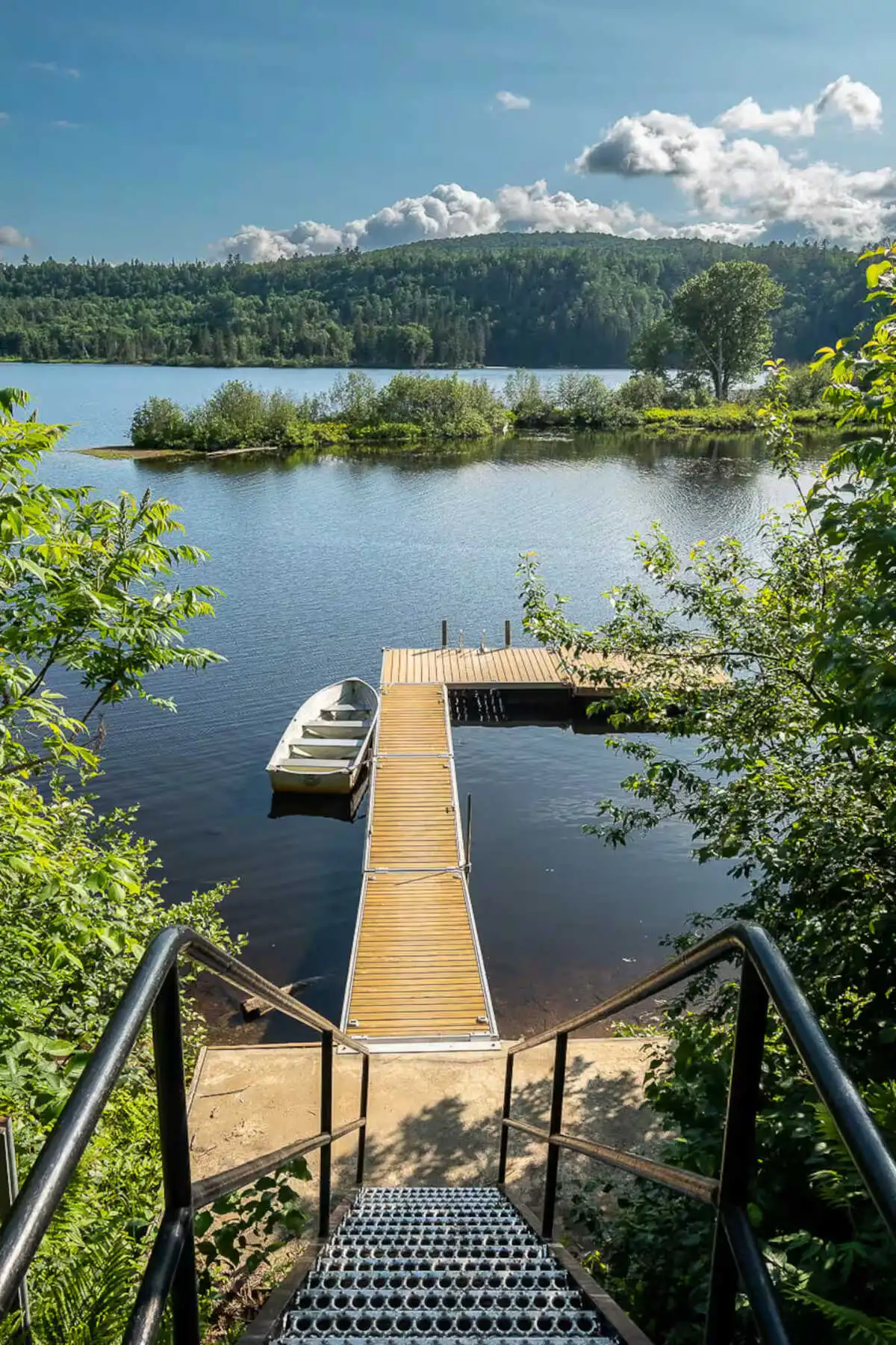 The large private dock lets you take advantage of our water sports facilities: 4 single kayaks and 1 rowboat with oars (life jackets are not supplied). At the foot of the chalet, the large private bay, calm and current-free, will enable young and old alike to row in peace and quiet. The more romantic will set up an Adirondack chair on the dock, read a good book or let themselves be lulled by the sun's delicate rays. It's also the perfect time to put your fishing skills to good use, as this is a common activity in the area, with bass, muskellunge, pike and lake sturgeon the star fish.